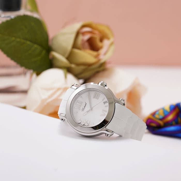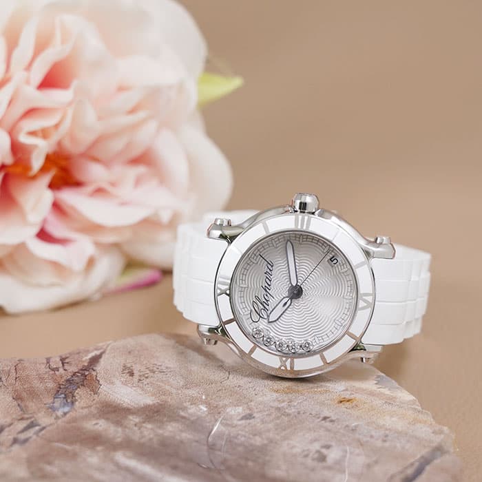 CHOPARD ショパール ハッピースポーツ ホワイト ベゼルダイヤ 278509-3007 【☆ワンプライス買取!! 付属品完品なら年式問いません!】