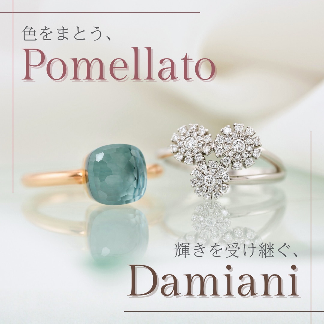 色をまとう、ポメラート。輝きを受け継ぐ、ダミアーニ。二つの美学に触れながら、ご自身の感性と向き合ってみてください。 Pomellato Damiani Pomellato POMELLATO ヌード リングプチ POMELLATO イコニカ リング POMELLATO トゥギャザー イヤリング Pomellato一覧 Damiani Damiani ベルエポック ネックレス Damiani マルゲリータ ピアス Damiani ミモザ ネックレス Damiani一覧 BRILLER TOPに戻る