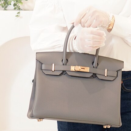 1837年に高級馬具ブランドとして創業したエルメスが、バーキンを生み出したのは1984年のこと。 当時の社長「ジャン・ルイ・デュマ」氏が、女優や歌手として活躍していたジェーン・バーキンと飛行機の中で出会ったことがきっかけで誕生したと言われています。 今では世界中の女性が憧れるバッグとなったバーキン。 その見た目の美しさと優れた実用性はもちろん、30年以上もの間価値が下がらない理由はその希少性の高さにあります。 正規店においても目にする機会が限られ、「世界で最も希少なハンドバッグ」とも言われています。 とは言え、前述した実用性に加えてサイズやカラー、素材の多様さから、デイリー用としても一流のアイテム。 当店の豊富なラインナップの中から、あなたのライフスタイルにぴったりなバーキンをお選びください。