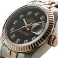 ROLEX デイトジャスト 179171G ブラック ROLEXロレックスは日付が瞬時に切り替わるデイトジャスト機構を、1940年代に特許を取得し、発売して以来ロングセラーになっているシリーズが「デイトジャスト」人気の秘密は素材やダイヤルカラーなどバリエーションの豊富さにもあります。特にステンレス×ピンクゴールドのコンビは人気が高く、主張しすぎない色合いと大きさが好まれる理由でもあります。10ポイントダイヤのブラックフェイスにピンクゴールドのコントラストがとても綺麗なモデルで長く愛用できるモデルでもあるのでプレゼントにもオススメです。ロレックス 時計の買取り・下取りも行っておりますので、お気軽にご相談ください。※純正の保護シールが付かない場合がございます。予めご了承下さい。