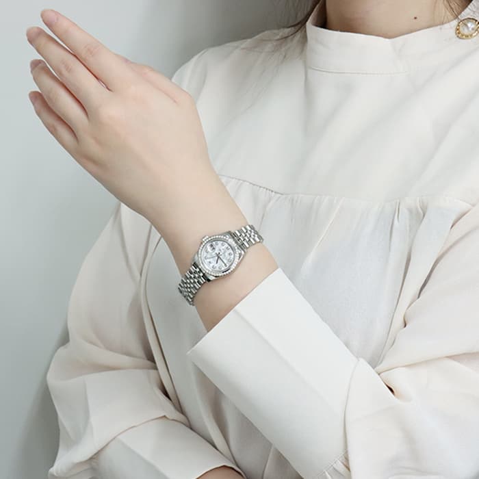 モデル名にもなった「デイトジャスト」機構が搭載されたドレス系シリーズの上級モデルです。