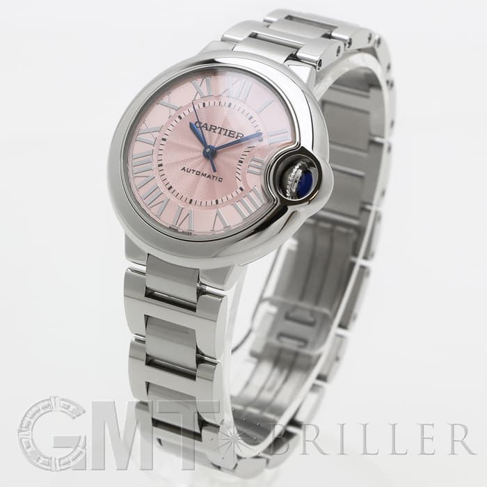CARTIER カルティエ バロンブルー 33mm W6920100 ピンク カルティエが誇るハイクラスウォッチ「バロンブルー」は、2007年の誕生以来、タンク・サントス等に並ぶ、人気のシリーズです。「バロン(風船)」「青い(ブルー)」の名の通り、ケースから青いカボションを包むリューズガードに至るまで、気品溢れるラウンドケースや美しいダイヤルデザインは芸術作品のような視覚的魅力を存分に感じます。自動巻きの33mmと、電池式の時計に比べると存在感はありますが女性の腕にフィットするデザインのため重さも気になりません。優しいピンク色の文字盤がより女性らしさを演出しています。※手首周り約17.5cm位まで(実寸での計測の為、多少の誤差が生じます。)カルティエ レディース腕時計の買取り・下取りも行っておりますので、お気軽にご相談ください。