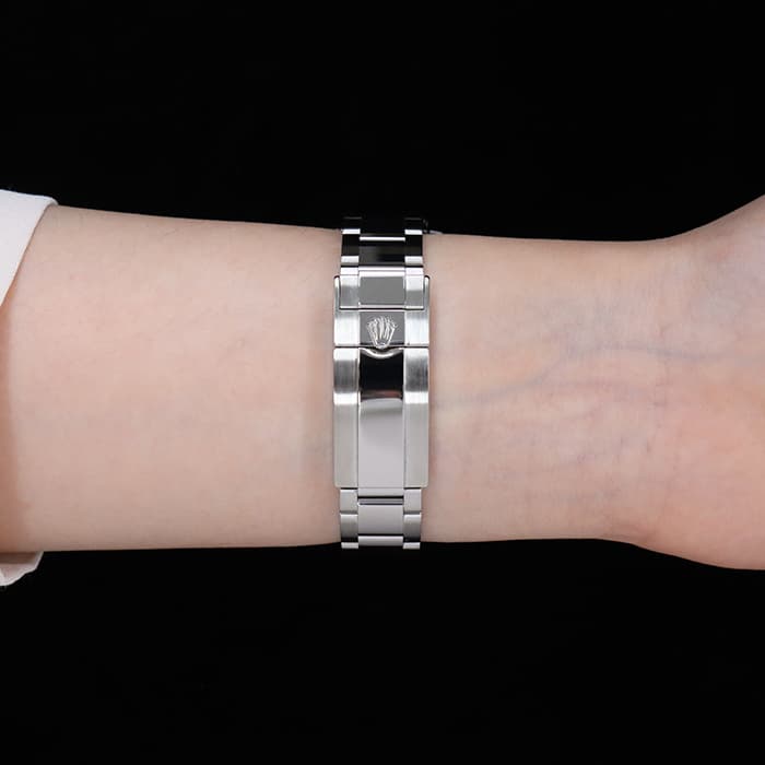 バックルはクラスプ内に収納されたエクステンションパーツで約5mm単位で長さ調整可能なイージーリンクを仕様。