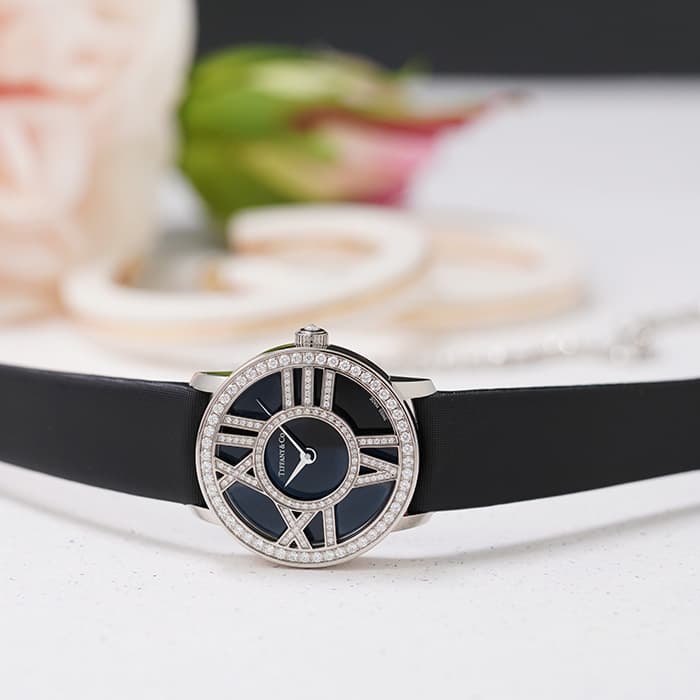 ニューヨーク5番街のブティック正面に設置された「アトラスクロック」が由来となっている象徴的なコレクションです。ブラックの美しい文字盤の上にレイアウトされた立体的なホワイトゴールドのベゼルに、ダイヤモンドがセッティングされたローマ数字が映え、モダンで美しい手元を演出します。