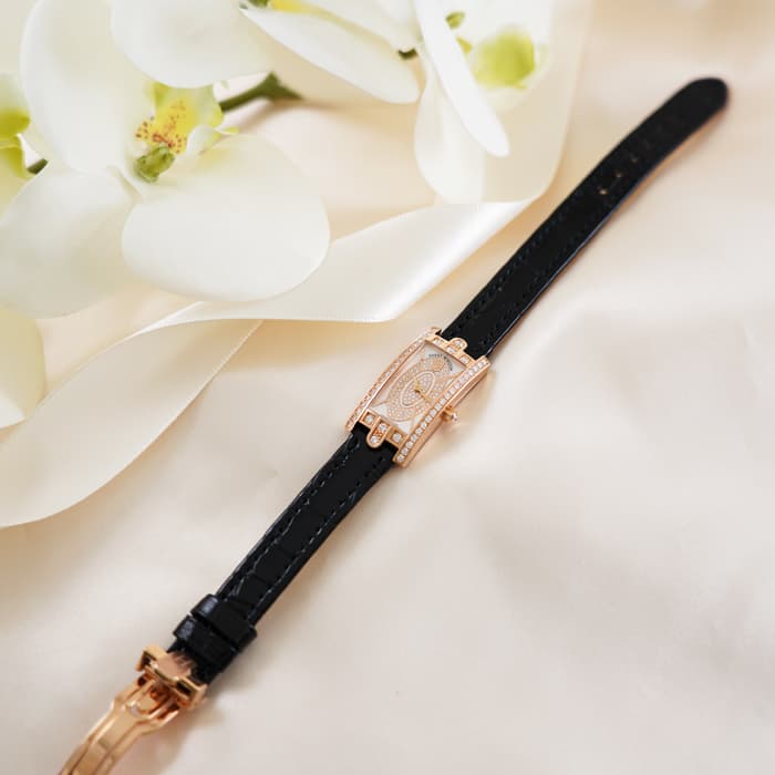 アールデコ調のローズゴールドのレクタンギュラーケースの