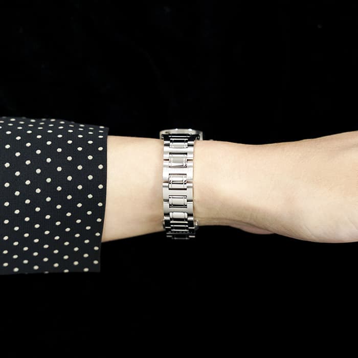 鏡面仕上げの26mmサイズのケースは華やかに腕を飾ってくれます。