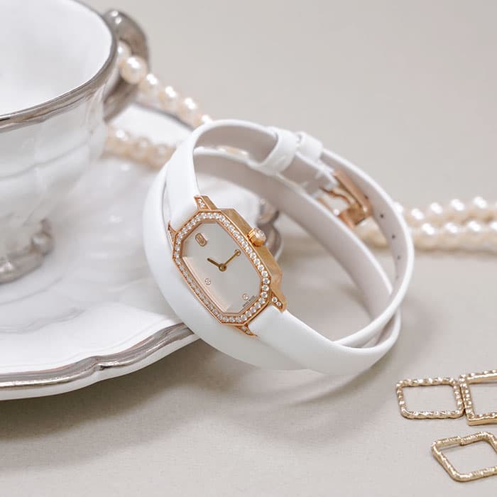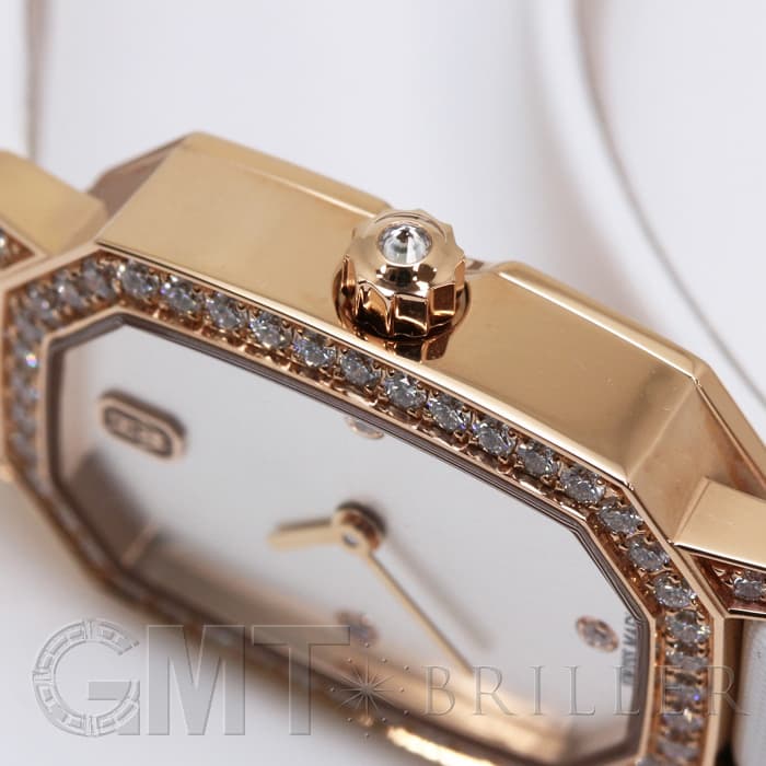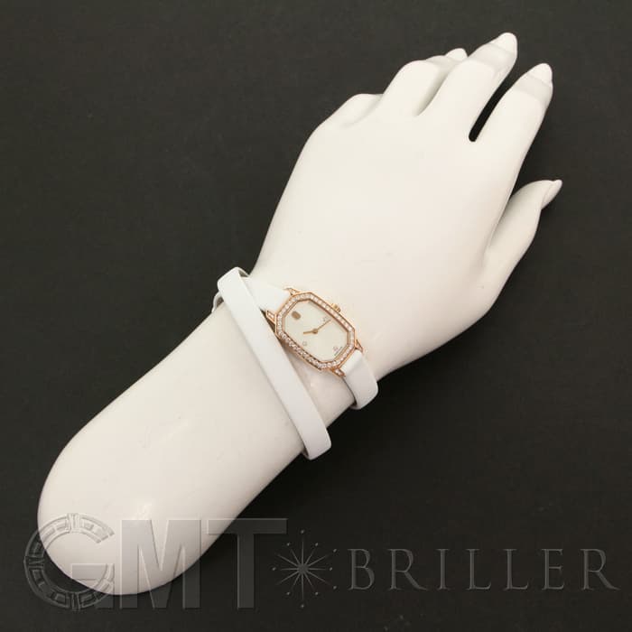 ダイヤモンドカットの一つにある「エメラルドカット」のフォルムからインスパイアされデザインされています。ローズゴールド・ケースに67個の約0.53カラットのダイヤモンドを散りばめ、ベルトの尾錠にも細工されたとても綺麗なモデルになっています。