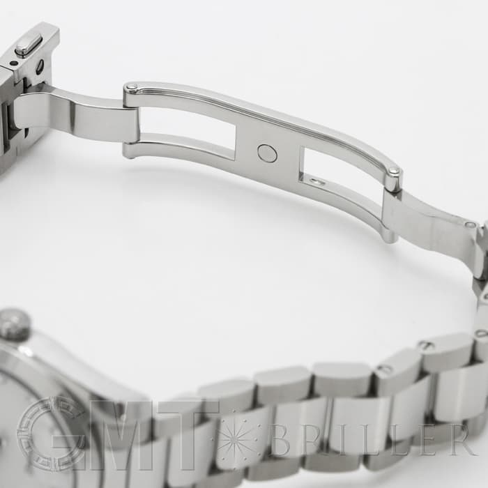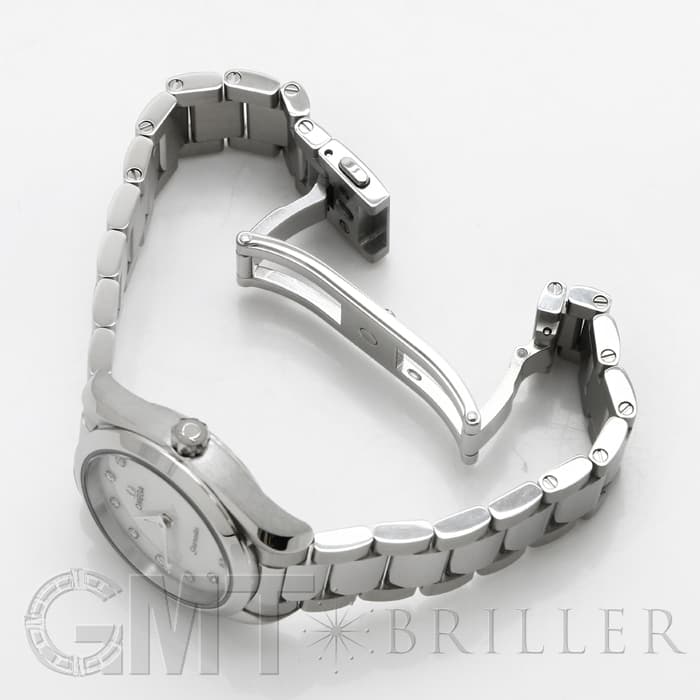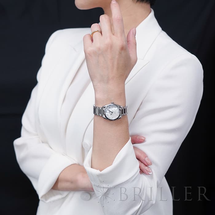 ホワイトシェルダイアルに8個のロジウムプレートのドットインデックスと、4個のダイヤモンドをセット