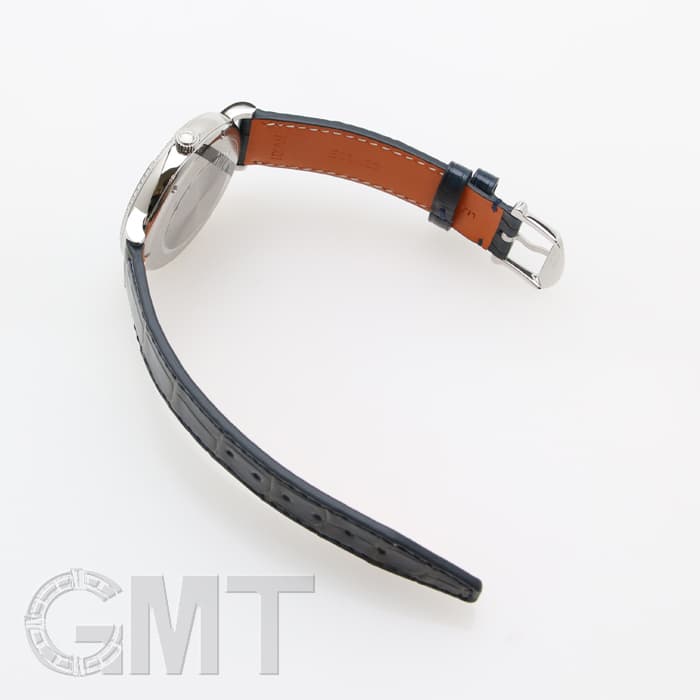 ダイヤルに合わせたブルーアリゲーター・ストラップは