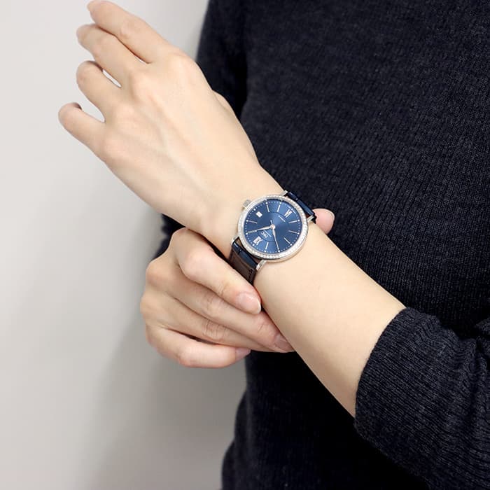 37mmのやや小さ目のケースのベゼルには66個のダイヤモンドをあしらい
