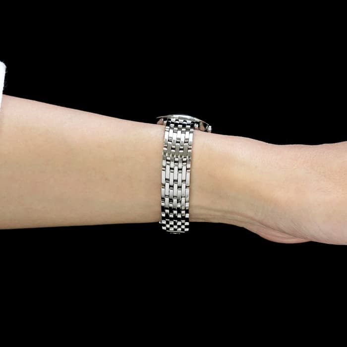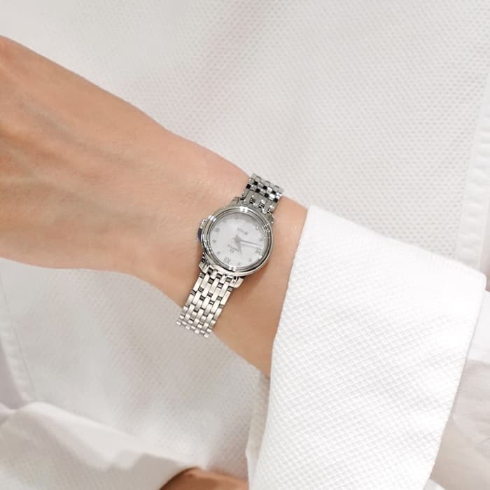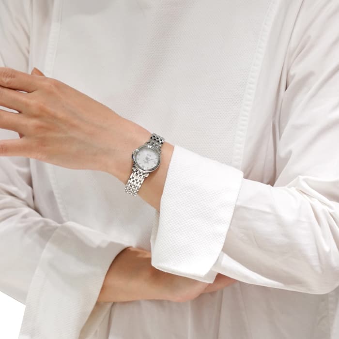 上品なマザーオブパール文字盤に12Pダイヤモンドインデックスは、