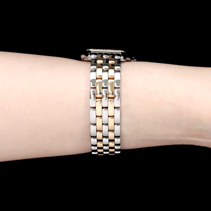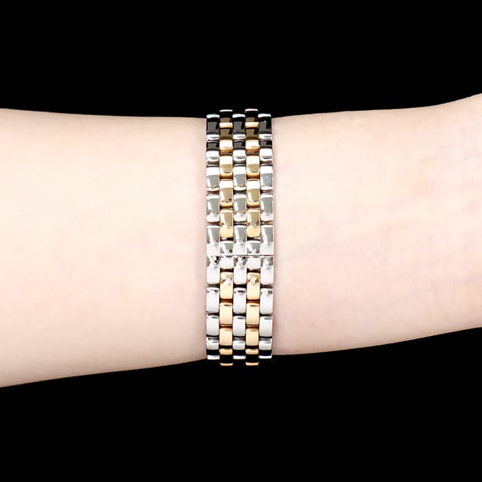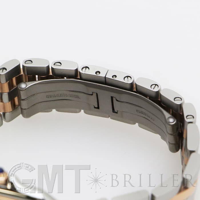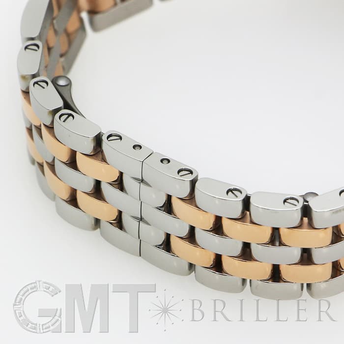 ベゼルやブレスにピンクゴールドを使用したコンビモデルはやわらかな印象で程よいラグジュアリーさを持っており、また、丸みを帯びたブレスレットは光を反射しキラキラと輝きます。