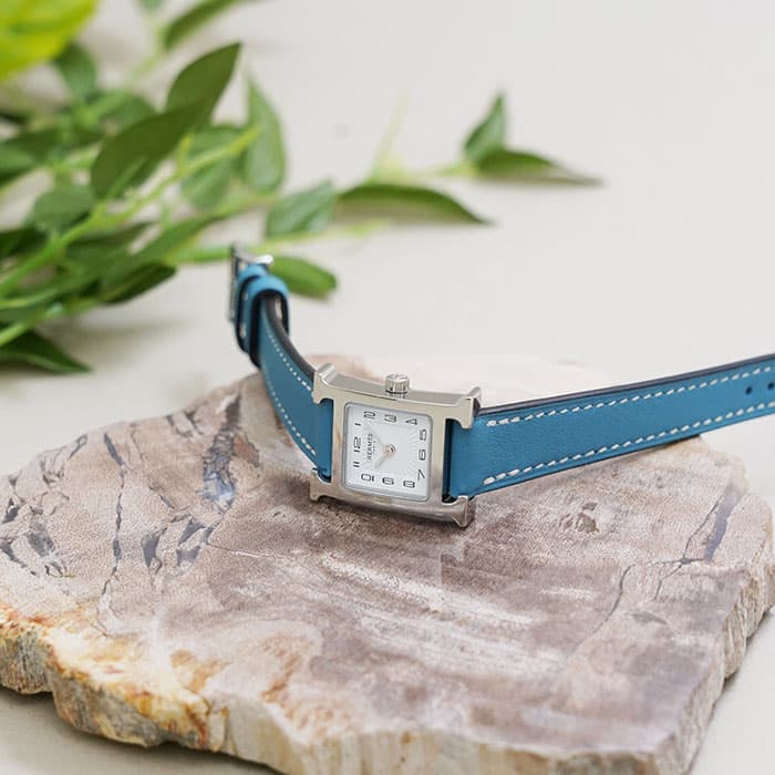 HERMES エルメス Hウォッチ W037879WW00 HH1.110.131/WW751837年に高級馬具メーカーとして始まり、世界最高峰の革製品ブランドとして、世界中のセレブリティに愛され続けるエルメス。1996年の誕生以来、ブランドの頭文字「H」をモチーフにした「Hウォッチ」は、エルメス時計の中でも人気を集めるアイコンウォッチです。特徴的な「H」型のケースに、シンプルな文字盤。世界が認めるエルメスの革職人によって製作される、最上級のレザーストラップは豊富なカラー展開でラインナップ。ファッション好きな女性への贈り物にもおすすめ。さまざまなシーンに、豊かな表情で楽しませてくれます。さりげなく身に着けられる上質な時間を、ぜひ体験してください。エルメス 時計の買取り・下取りも行っておりますので、お気軽にご相談ください。