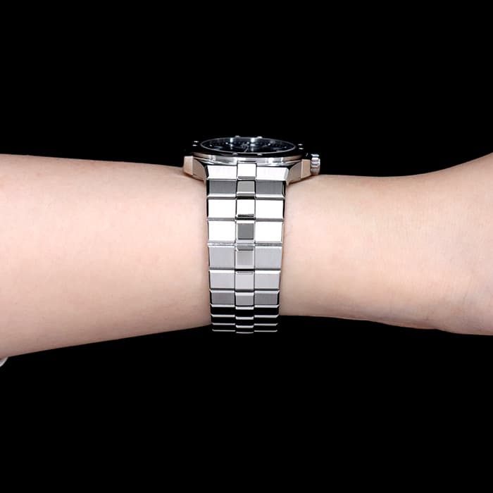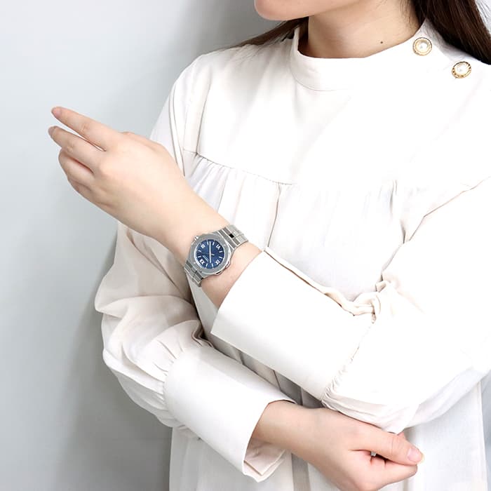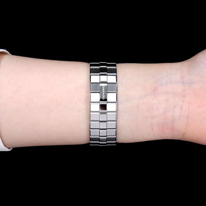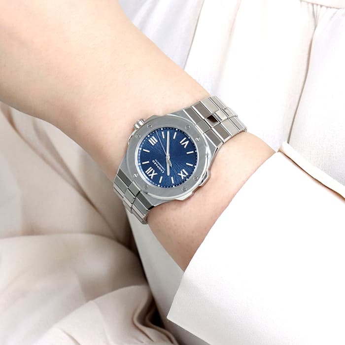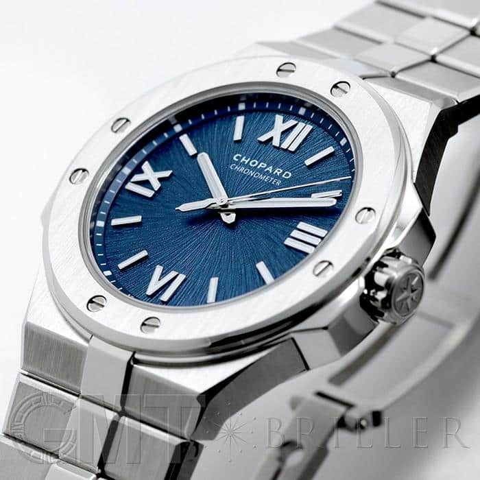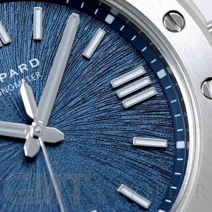 宝飾ブランドとして、時計ブランドとして 世界屈指の技術力を誇るショパールの人気コレクション「アルパインイーグル」 スタイリッシュなラグジュアリースポーツモデルで、ケースとブレスが一体型になっているのが特徴的です。 ワシの虹彩をイメージしたブルーの文字盤で、秒針にもワシの羽毛を感じさせるデザインが施された繊細なデザインが手元をおしゃれに彩ります。 ケースやブレスに使われているステンレススティールはショパールが 4年もの歳月を費やし開発した「ルーセント スティール A223」です。 時計に使用されることの多いステンレススティール「316L」と比べ50%高い硬度を誇り、独特の輝きがあるので、動く度に光を受けて時計全体を輝かせます。
