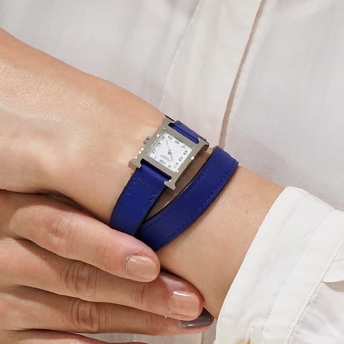 エルメス Hウォッチ ミニ ドゥブルトゥール HH1.110.131/SW7T 039366WW00 ブルーアンクル