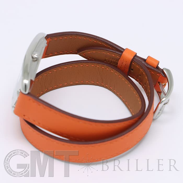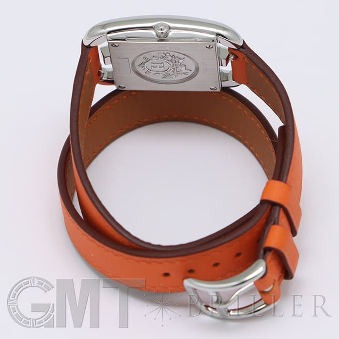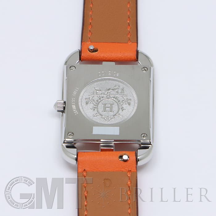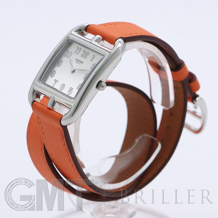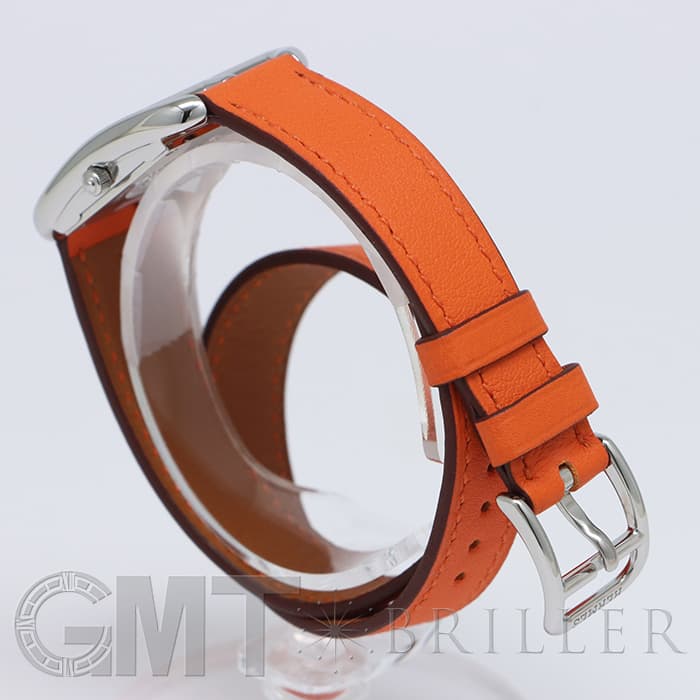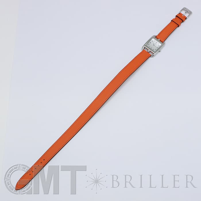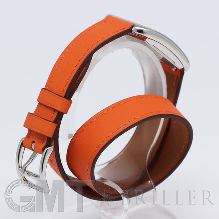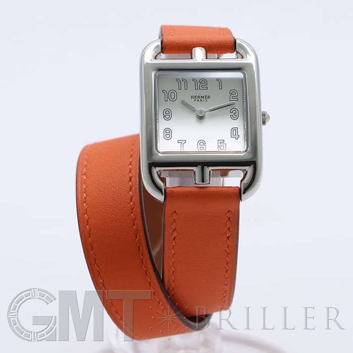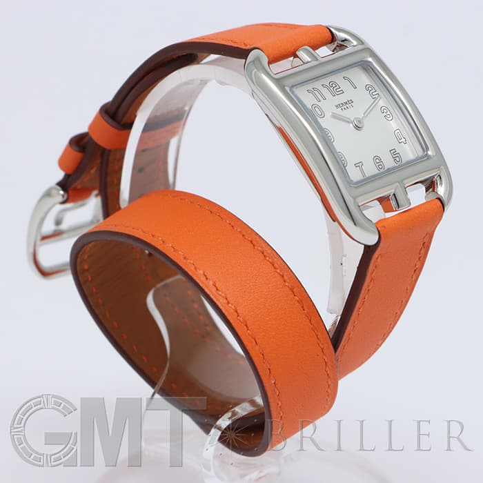 「H」型のケースに柔らかな曲線のラグが組み合わせられた「ケープコッド」は アメリカ東海岸の高級リゾート地ケープコッドをイメージして作られた時計です。 エルメスのバッグや小物などに使用される皮革素材「ヴォー(=雄仔牛)・スウィフト」を採用したドゥブルトゥール(2重巻)のストラップは、エルメスのブランドカラーでもある鮮やかなエルメスらしいオレンジで 大人の上品な魅力を醸し出しながらも生き生きとした表情をお楽しみいただけます。 様々なコーディネートに対応できるオールマイティなデザインです。