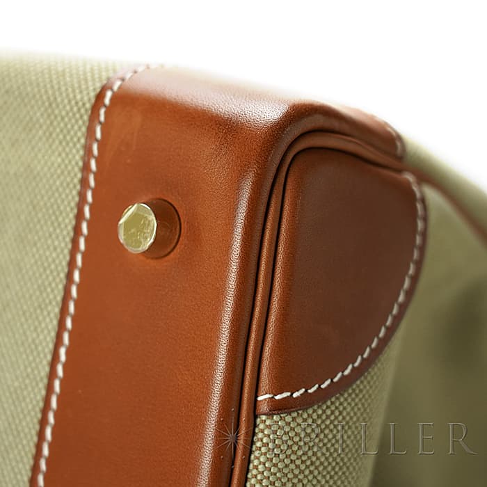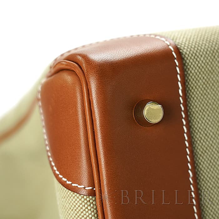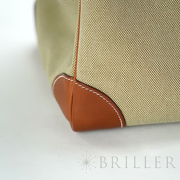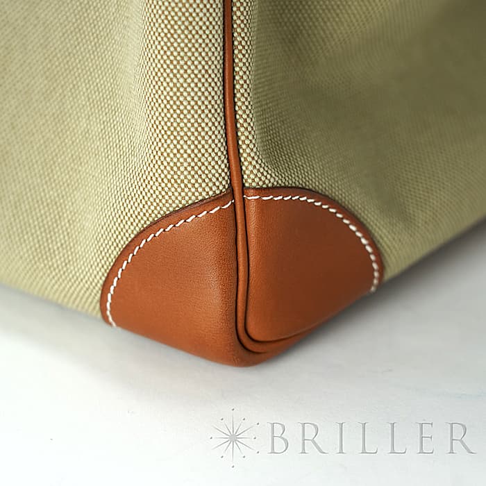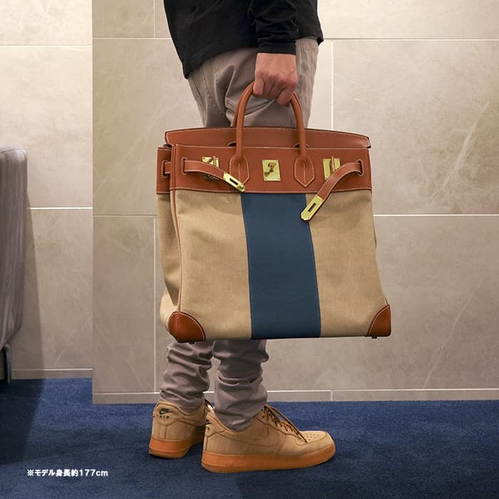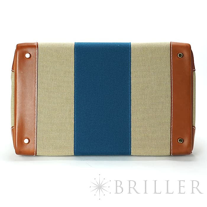 デッドストックのオータクロアが入荷しました。 高さ"haut"とストラップ"courroies"から名づけれらた"オータクロア"という名前の通り、鞍や乗馬ブールを収納するために作られた収納力があり、その後旅行用バッグとして変化をしていったエルメスを象徴するようなバッグです。 コットンキャンバス素材のトワルの中央に施されたブルーのラインが大海原を冒険するような楽しい雰囲気を演出してしています。女性の旅行バッグとしても男性のビジネスバッグとしてもおすすめです。 状態は写真でご覧ください。 □R刻印(2014年)のお品物です。