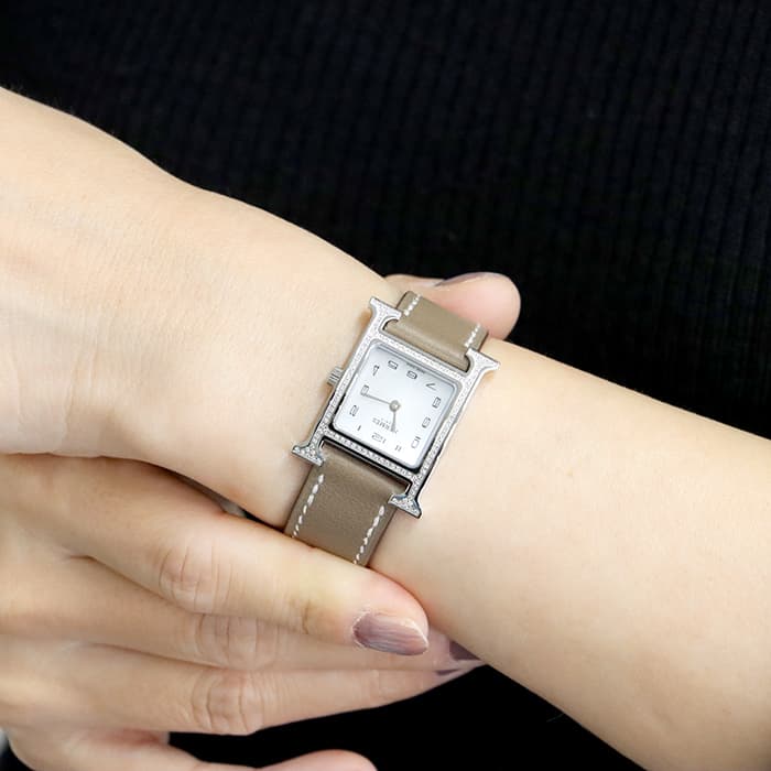 エルメス Hウォッチ ベゼルダイヤ HH1.110.131/WW18 037883WW00 エトゥープ