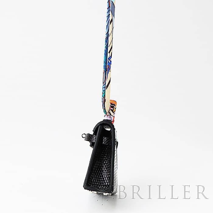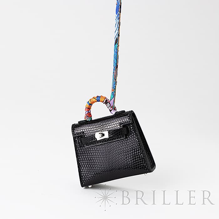 エルメス ケリーツイリーチャーム(ケリートゥイリーチャーム) リザード ブラック シルバー金具 HERMES KELLYエルメスのアイコニックなバッグ「ケリー」がチャームになりました。とっても小さくて可愛らしいケリーバッグはフラップを開けることもでき、精巧に作られています。リザード素材のチャームは珍しく、シルクで作られたストラップが高級感とおしゃれのエッセンスを感じさせます。ケリーやバーキンの素材や色に合わせてコーディネートするとこなれ感たっぷりのリッチな雰囲気が楽しめます。プレゼント用のラッピングも無料で承りますのでぜひご利用ください。