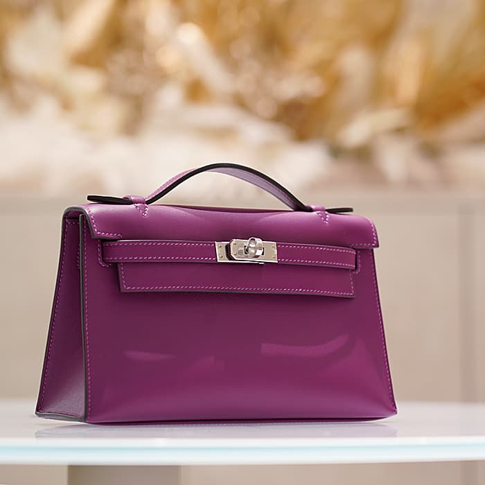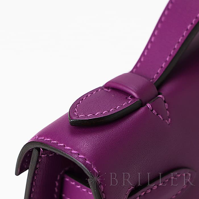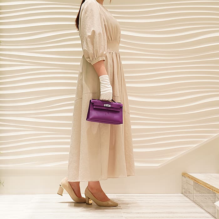 ポシェットケリーはケリーの高級感あるデザインそのままに軽やかなサイズ感で人気があります。ミニバッグ人気をうけてレアになっているポシェットケリーの中でも柔らかくなめらかなスイフト素材のアネモネは発色がよく、目を惹く存在です。ゴールド金具は珍しく、華やかな雰囲気を盛り上げてくれるレディなアイテムです。パーティーやお出かけのお供に、ドラマティックなコーディネートを完成させてくれそうです。ハンドル部分をたためばクラッチバッグのように持てる使い勝手のよさも魅力的なY刻印(2020年)のバッグです。