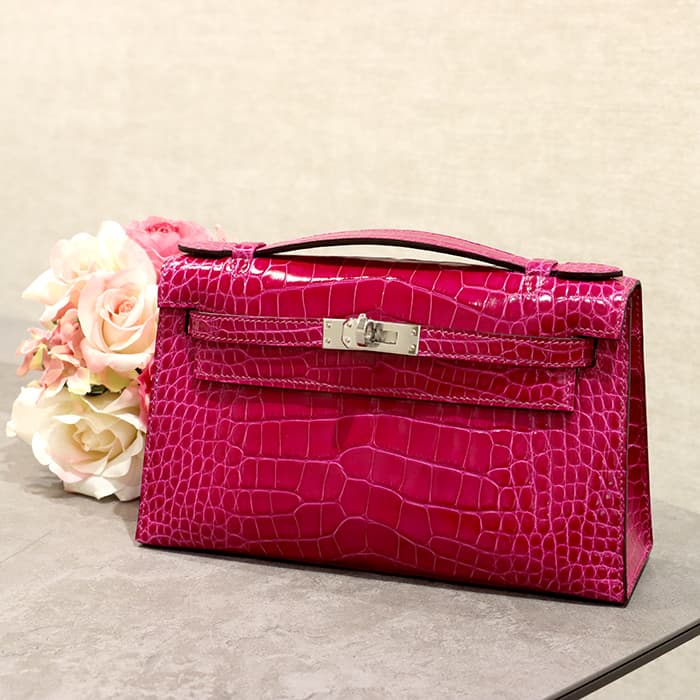 HERMES エルメス ポシェットケリー ローズシェヘラザード アリゲーター シルバー金具