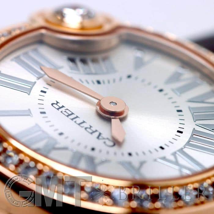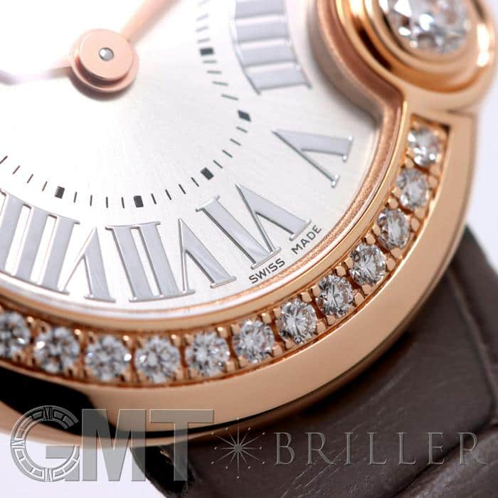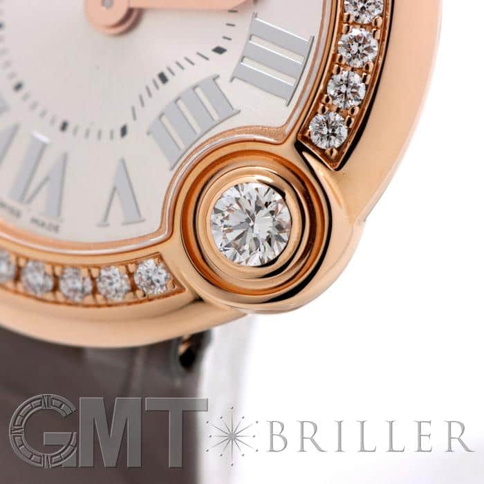 ピンクゴールドのラウンドケースにハイジュエラー「カルティエ」厳選のダイヤモンドを合計約0.56ctセッティングした気品あふれる「バロン ブラン ドゥ カルティエ」。丸みのあるフォルムに、シルバーのサンレイ仕上げの美しい文字盤にシルバーのインデックスがやさしく上品な雰囲気を演出しています。ベゼルにセッティングされた上質なダイヤモンドは、一粒大きくあしらわれており、輝きをより一層華やかに見せているラグジュアリーウォッチです。
