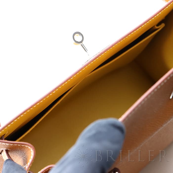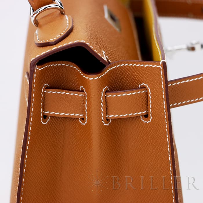 エルメス ケリー ヴェルソ 28 外縫い エプソン ゴールド×ジョーヌアンブル シルバー金具 HERMES KELLY VERSO 28