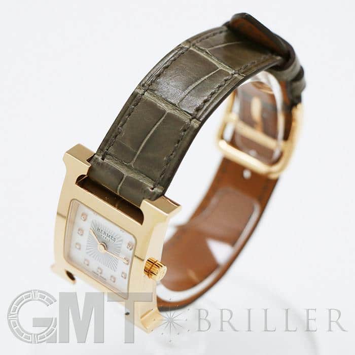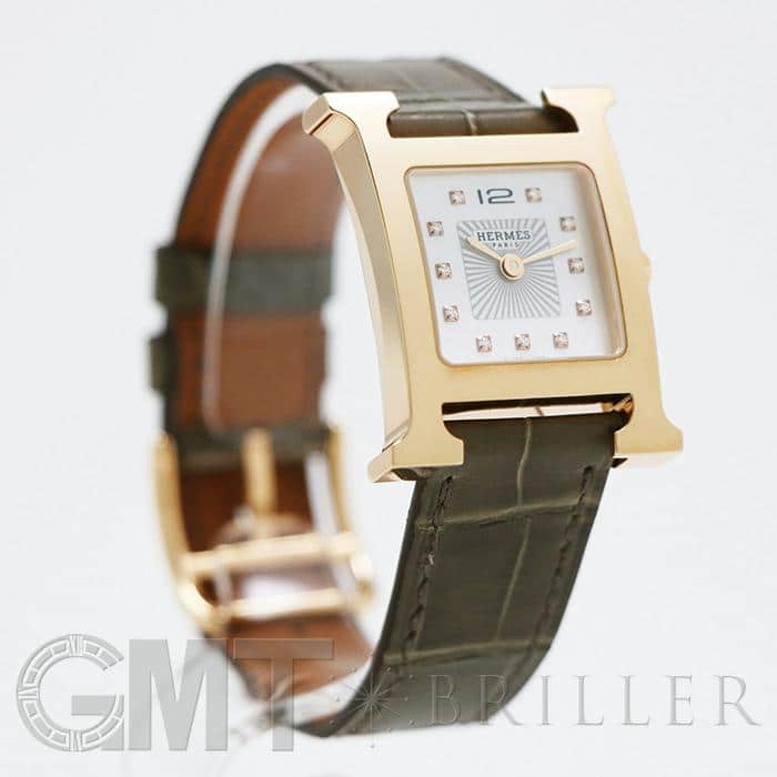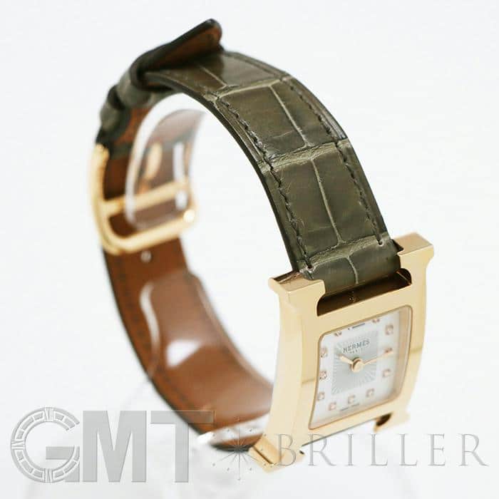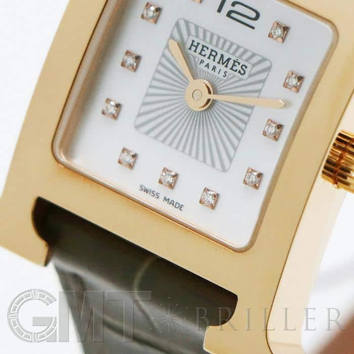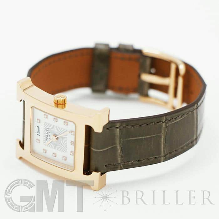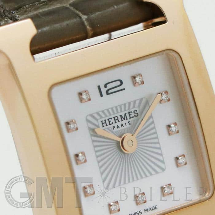 HERMES エルメス Hウォッチ W053355WW00 ピンクゴールドプレーテッド グレーエレファント PMサイズ