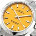 ロレックス オイスターパーペチュアル 31 277200 イエロー初代オイスターの直系モデル、ノンデイトの「オイスターパーペチュアル」。ボーイズサイズとなる31ミリのこのモデルも2020年に55時間のロングパワーリザーブの「Cal.2232」を搭載しさらなる進化を遂げました。リニューアルに伴い一新されたダイヤルのカラーバリエーションが話題になりましたが、こちらも今までのラインナップにはなかった鮮やかな「イエロー」のカラーリングになります。ラッカー仕上げによる発色の良いイエローダイヤルは、手元を明るく印象付けます。ロレックス 時計の買取り・下取りも行っておりますので、お気軽にご相談ください。