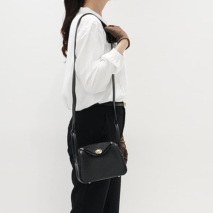 HERMES エルメス リンディ ミニ 20 トゴ ブラック ゴールド金具2019年春夏に登場以来ますます人気が高まっているリンディミニが入荷しました。発色がよく、上質なレザーの質感豊かなトゴ素材のブラックにゴールド金具の組み合わせなら、コーディネートしやすく、エレガントからカジュアルまで活躍してくれそうです。ショルダーを肩掛けにしたり、斜め掛けにしたり、旅行先でもこれ1つでおしゃれが決まるので、お出かけ気分が盛り上がりそうでおすすめです。写真にビニールがついていますが、実物にはついていません。 Z刻印(2021年)のお品物です。
