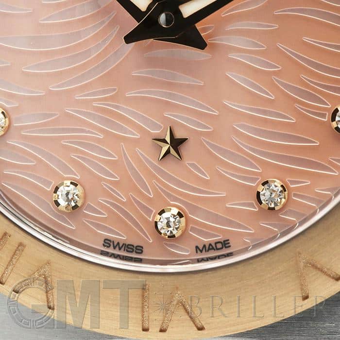 上品なピンクのシェル文字盤の上には星を連想させるような12個のダイヤが配置された豪華なデザインとなっています。