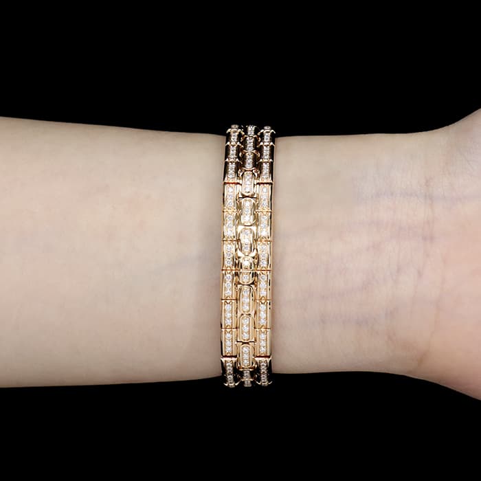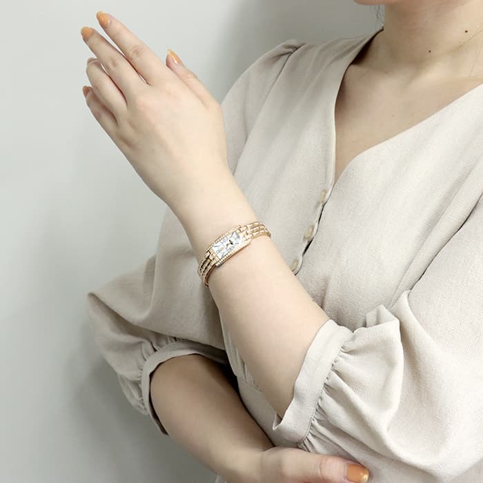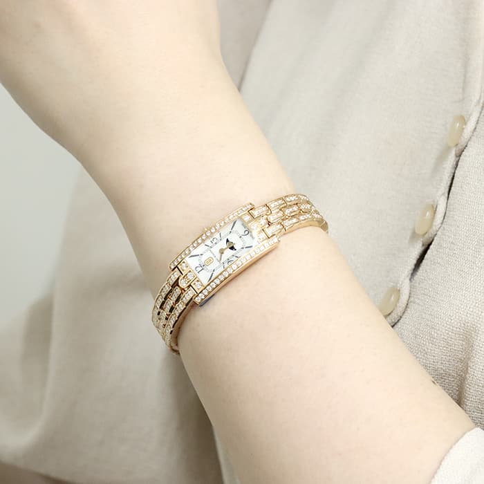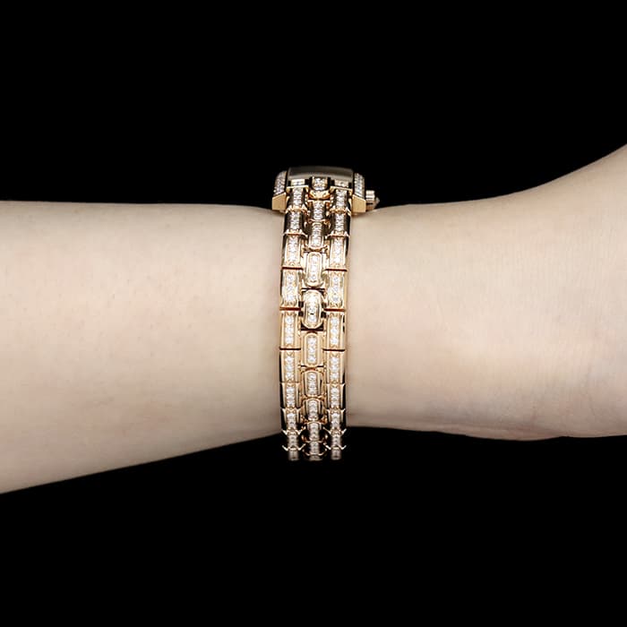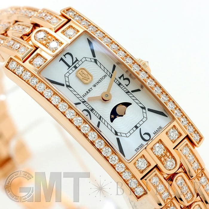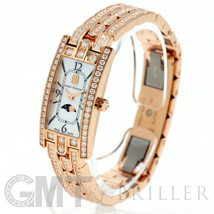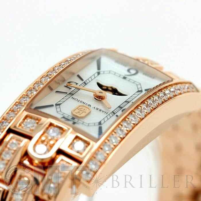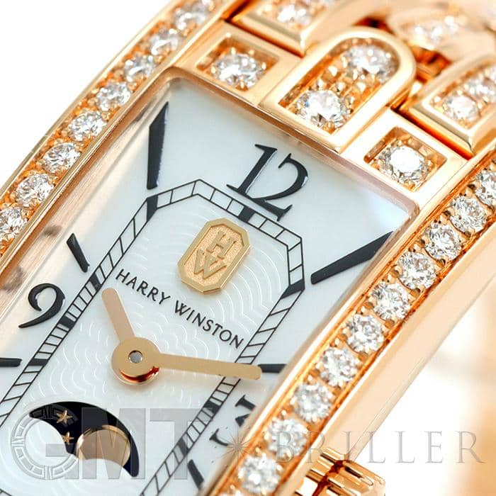「キング・オブ・ダイヤモンド」ハリー・ウィンストンを代表するタイムピース「アヴェニュー」。ハリーウィンストンが本店を構える、ニューヨークの雰囲気を表現した人気コレクションです。6時位置にある月の満ち欠けを示すムーンフェイズが神秘的な雰囲気をデザインにプラスしています。ローズゴールドのレクタンギュラーケースからブレスレット全体に、259個ものラウンド・ブリリアントカット・ダイヤモンドを贅沢にセッティング。眩いほどにリュクスな輝きで装いをスペシャルなものに演出する、格別なラグジュアリーウォッチです。