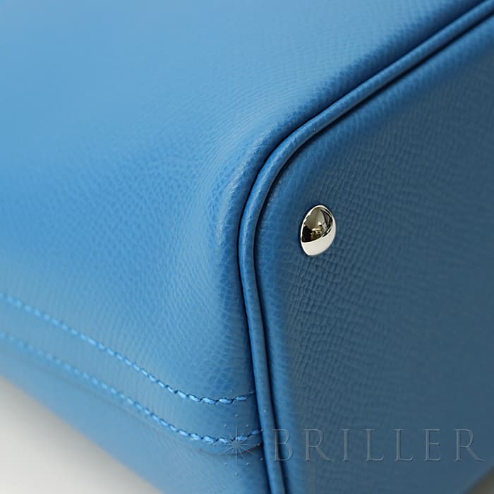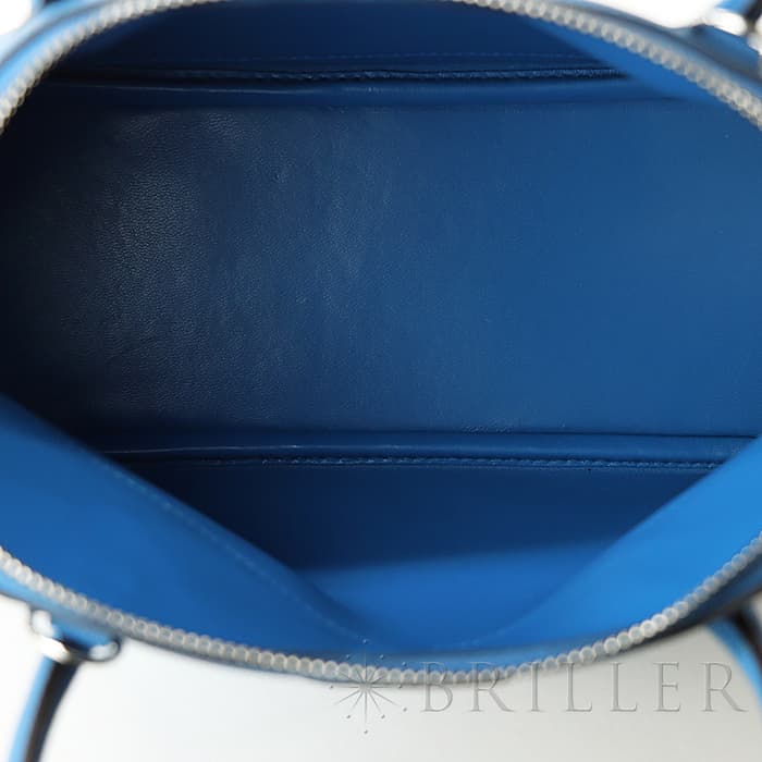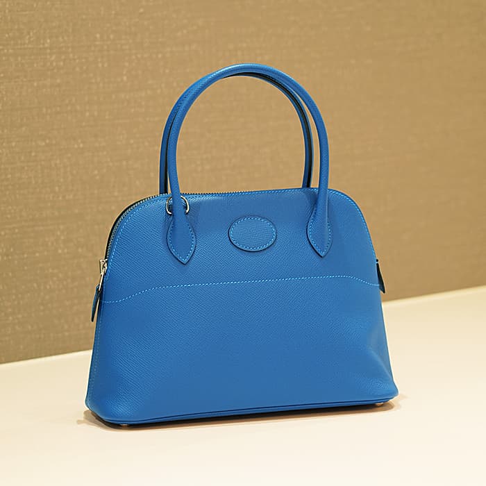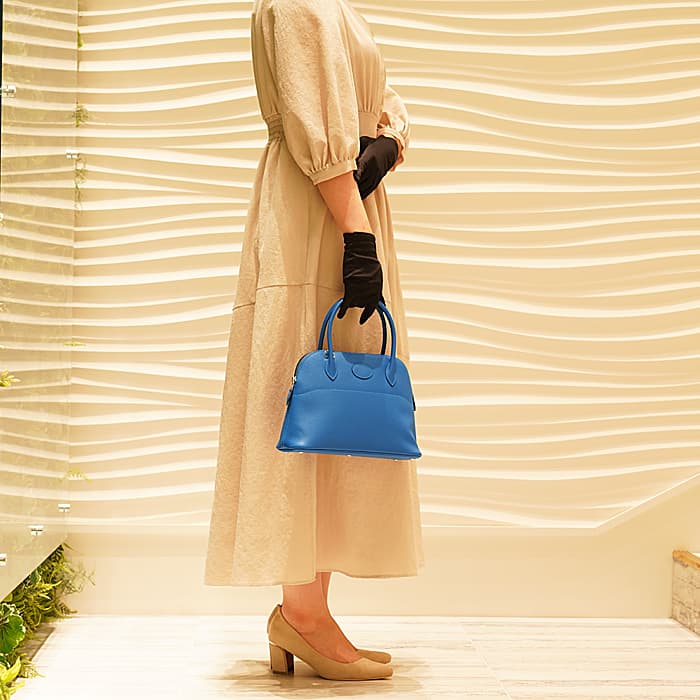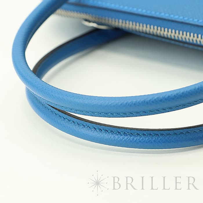 1923年、初のファスナー付きバッグとして「ボリード」はデビューしました。元の名は、ラグジュアリースポーツカーの代表格「ブガッティ」の前面に位置するラジエーターの形状と、バッグのフォルムが似ていることが由来し、1923年に「ボリード」というレーシングカーの名前に改名されました。27の小さめサイズは持ち歩きやすく、手持ちはもちろん、ショルダーストラップを付けてもエレガントな雰囲気で使えます。 2011年に登場した「ミコノス」は、エーゲ海に浮かぶ白い宝石と称される“ミコノス島”の見渡す限りの青い海、青い空をイメージして制作されたカラーです。鮮やかで優雅なブルーカラーをシルバー金具で上品にまとめ上げ、一目見ただけで忘れられない魅力的なアイテムに仕上がっています。Z刻印(2021年)の新品のお品物です。