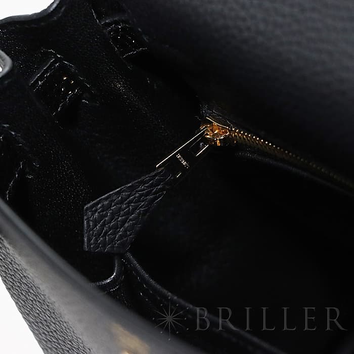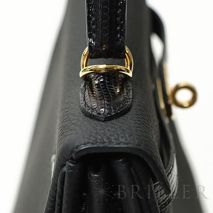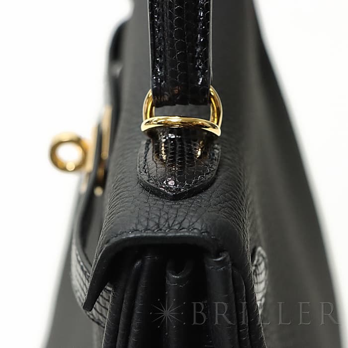 エルメス ケリータッチ25 内縫い リザード×トゴ ブラック ゴールド金具 Hermes kelly25 とても希少な「ケリータッチ」が入荷しました。柔らかでマットな質感が人気の「トゴ」をベースに、ハンドルとベルトには細かな班が特徴の艶やかなエキゾチックレザーの「リザード」が使われ、モダンでラグジュアリーな雰囲気のケリーです。「ブラック」は装いやシーンを選ばず使いやすいことからも、ファーストエルメスとして選ばれる人気のカラーですが、この特別なケリータッチならコーディネートにドラマティックな空気をプラスしてくれそうです。カデナとクロシェットもリザードになっているので、ハンドルにかけて見せたい可愛さです。25サイズはハンドバッグとしても、ストラップを使って肩から掛けても使える一生物の逸品です。 Z刻印(2021年)の新品のお品物です。