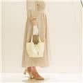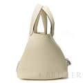 2003年発表の「ピコタン」。元々は荷物を運ぶ牛馬用の飼料を入れる袋からイメージされたバッグです。“ピコタン”とは木で作られたボワソーという穀物の量を測る入れ物で重さを計測する「単位」のことです。2008年頃からカデナの付いた「ピコタンロック」にモデルチェンジされました。MMサイズは収納力も豊富で、「トリヨンクレマンス」の柔らかな質感はアイテムをいっぱい入れてもピコタンの丸いフォルムが崩れません。可愛らしいナタが装いを上品に彩ります。