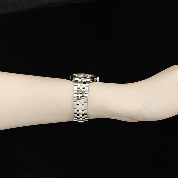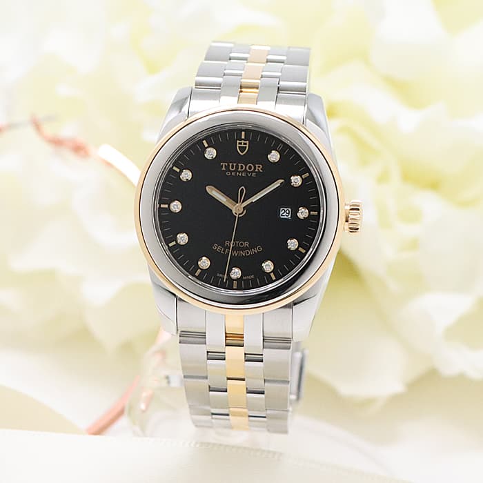 ROLEXのディフュージョンブランドとして誕生した過去を持つTUDORですが、現在は独自路線のデザインを豊富に展開しており、多くのファンを獲得しています。グラマーデイトコレクションはレトロシックなデザインが特徴です。こちらはステンレスにイエローゴールドを組合わせ、文字盤には11ポイントのダイヤモンドをセッティングしたリッチなデザインに仕上がっています。ケース径は視認性に優れる31mmで、程よい存在感が手元で楽しめます。カジュアルからビジネスまで幅広いシーンでご利用頂ける腕時計です。