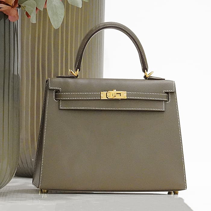 HERMES エルメス ケリー 25 エプソン 外縫い エトゥープ ゴールド金具