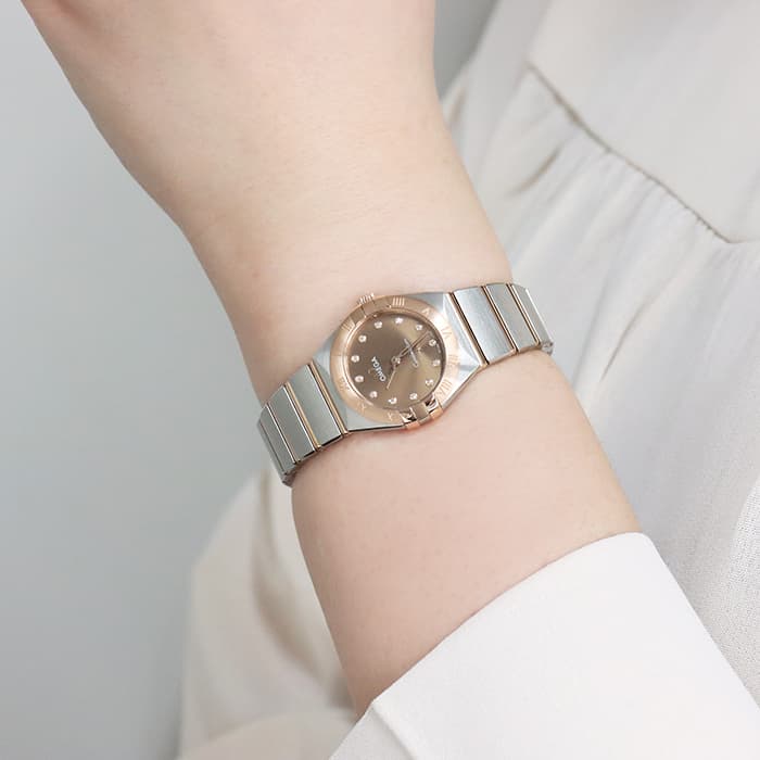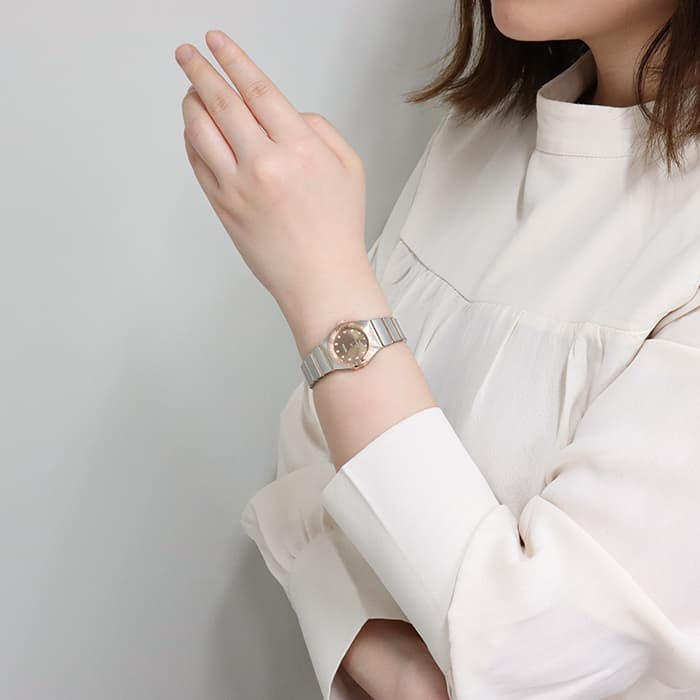 「コンステレーション」シリーズは1952年から女性たちに愛され続ける、オメガ不朽の名作です。 セドナゴールドとステンレスのコンビに、ブラウン文字盤の組み合わせは肌馴染みも良く、可愛らしさとエレガントな印象を兼ね備えます。角が丸みを帯びたステンレスのブレスレットは着け心地も良く、デイリーにご愛用頂ける腕時計です。