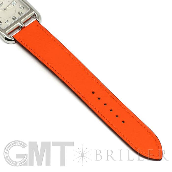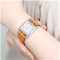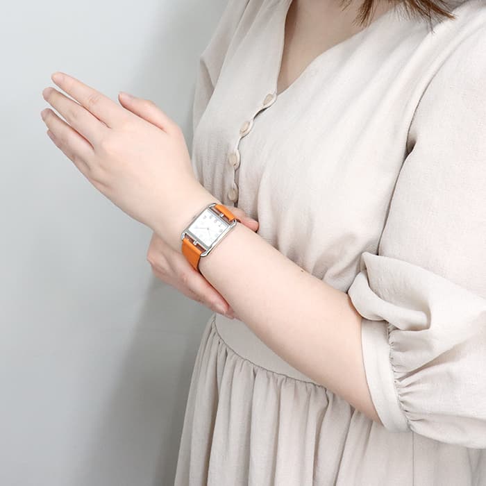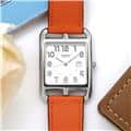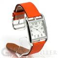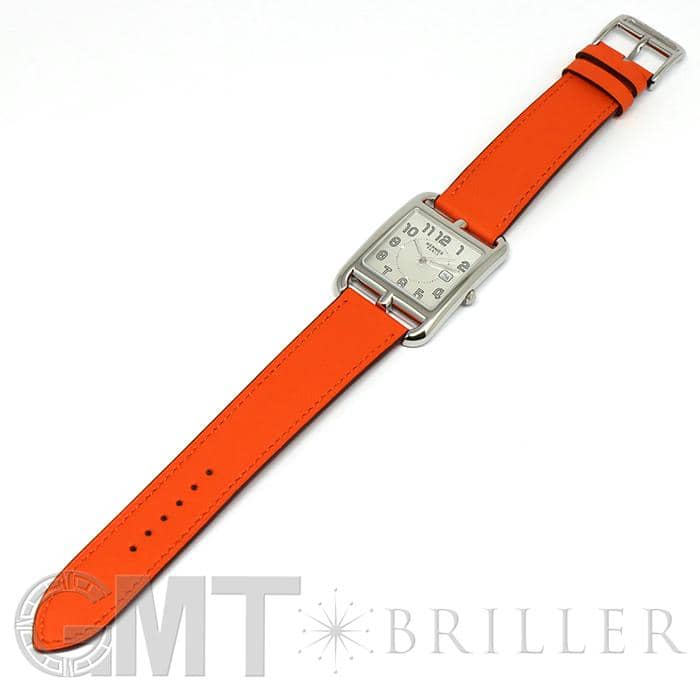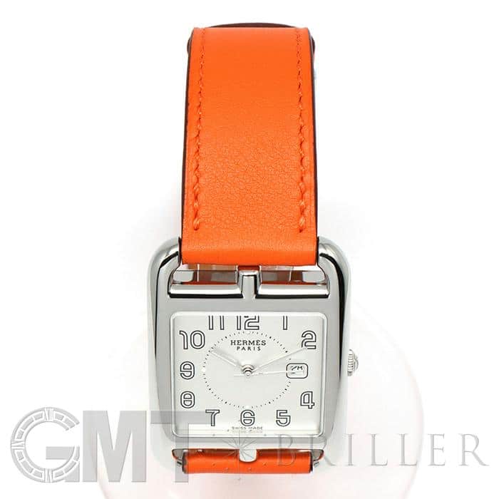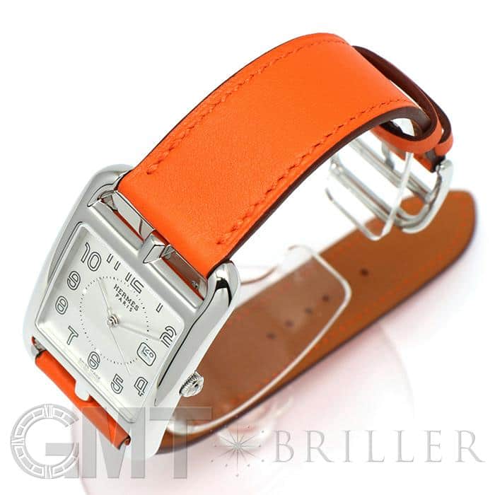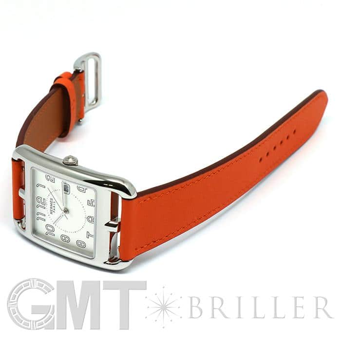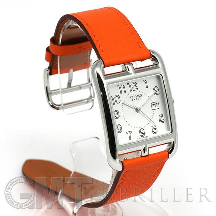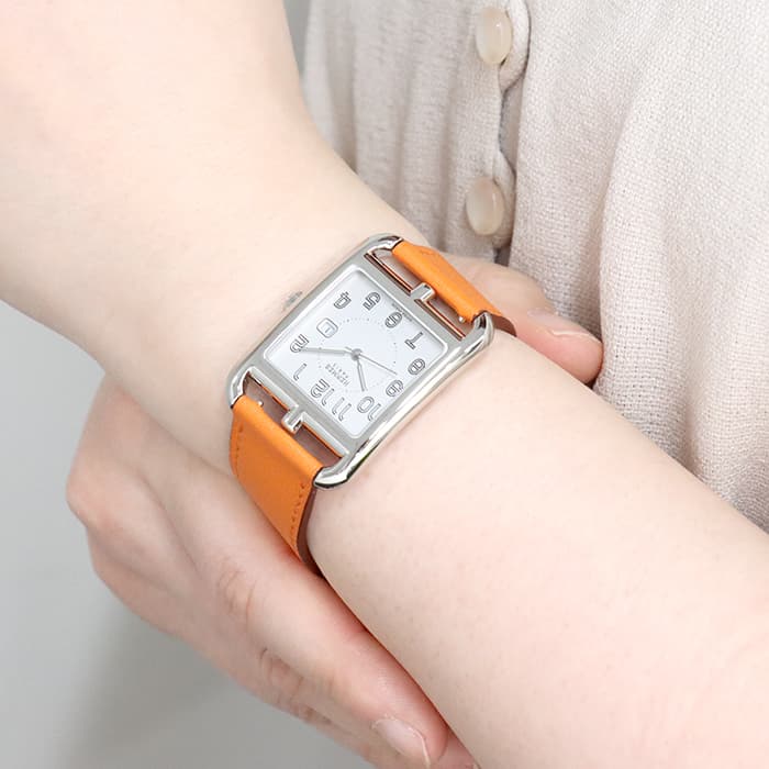 1837年に高級馬具メーカーとして始まり、世界最高峰の革製品ブランドとして、世界中のセレブリティに愛され続けるエルメス。柔らかな曲線が「H」型のケースに施された「ケープコッド」はアメリカ東海岸の高級リゾート地ケープコッドをイメージして作られた時計です。ケースサイズが29mm×29mmのデザインは時刻が読み取りやすく、また3時位置に日付表示が備わっているので実用性に優れます。 エルメスのイメージカラーのオレンジをベルトに使用したおしゃれな1本です。オレンジボックスも付属するので、プレゼントにもおすすめします。
