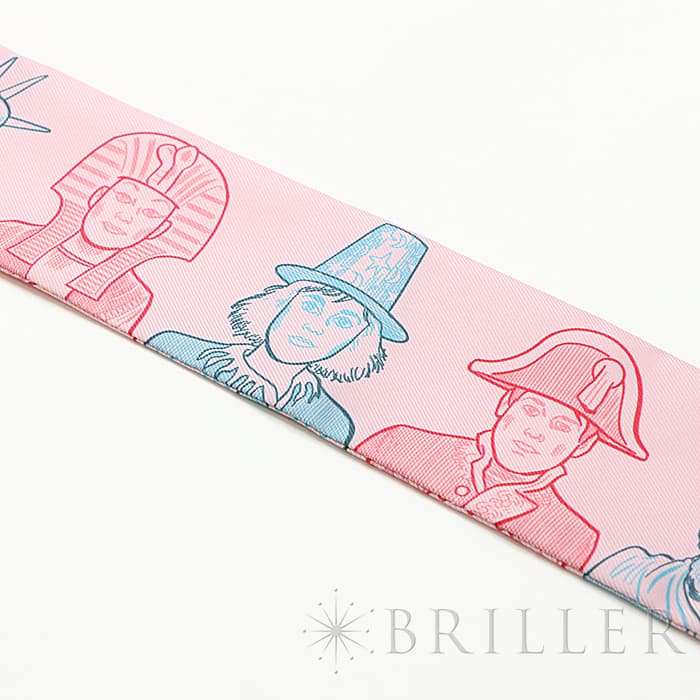 エルメスのシルクは優れた品質と、デザインに対しての情熱、ふんだんに取り入れた遊び心やユーモアがあふれております。1枚ごとにタイトルが決められており、「短く、的確で、輝きがある」をコンセプトに決められているそうです。 その中で「ツイリー」はバッグにとって貴重なアイテム。ハンドルにくるくると巻いてお使いいただくと、ガラリとお手持ちのエルメスの印象が変わります。マルチカラーなので、巻き方を変えて頂くと更に楽しみの幅が広がります。ハンドルの汚れ防止にも一役買いますし、もちろん自身のファッションにもお使いいただけます。ヘアバンドにしたり、首に巻いて頂いたりとユースフルな「ツイリー」を是非ご検討ください。