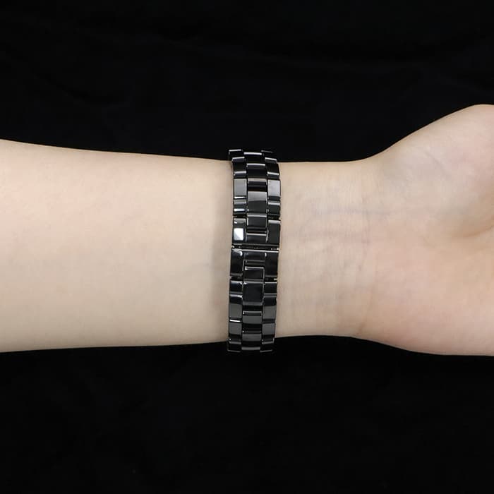 シャネルを代表する時計といえばブラックセラミックが美しいJ12。傷が付きにくく、丈夫な素材であるセラミックを腕時計業界に広めたこのJ12は、一流のファッションブランドであるシャネルならではの偉業と言えます。2022年に誕生したH5696は、ケースサイズ33mmに初の自動巻きムーブメント「キャリバー12.2」を搭載した機械式時計です。パワーリザーブは約50時間と長く、また200m防水と実用性にも長けており、初めての機械式時計としてもご利用いただきやすくなっています。また、ブラック文字盤に映える白のアラビア数字インデックスもセラミック製となり、視認性がさらに向上、より一体感のある美しいデザインに生まれ変わりました。カジュアルにもフォーマルにもマッチする普遍的なデザインは女性の腕元を飾るのに相応しい時計です。