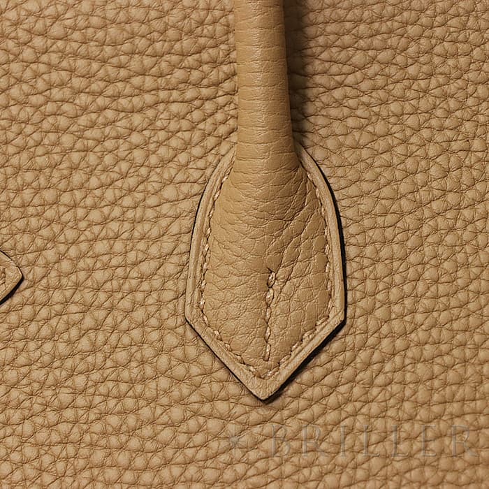 2022年春夏コレクションで登場したベージュカラーで品のある「チャイ」。 同系色のビスキュイよりもほんのり明るくあたたかみを感じるような色合いです。ベージュ系とベーシックカラーなため、幅広いファッションやツイリーやチャームとよく合います。ファーストバーキンにもぜひ検討いただきたいバッグです。