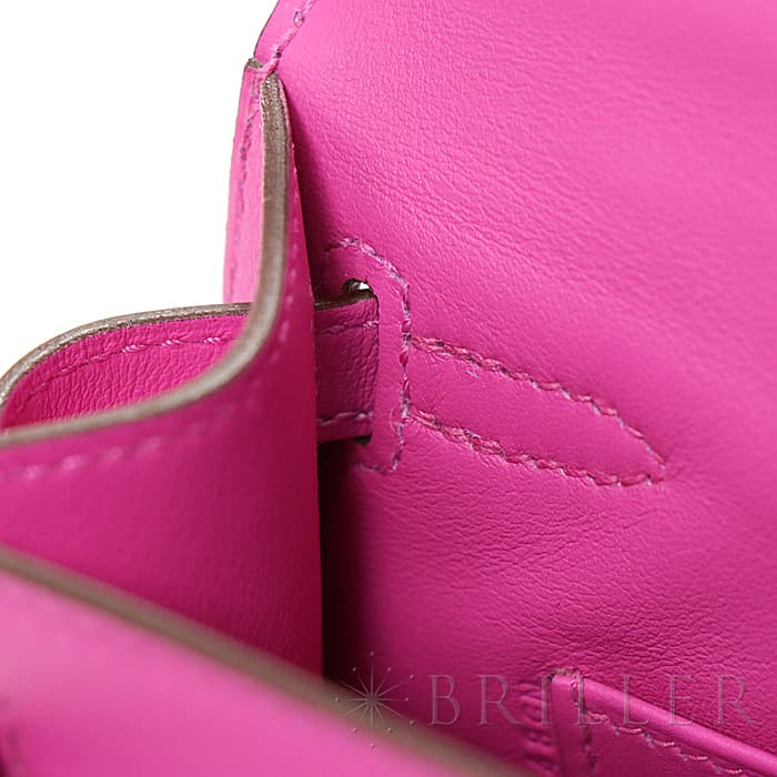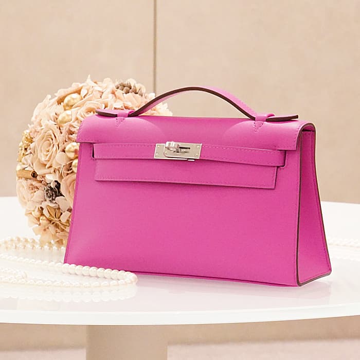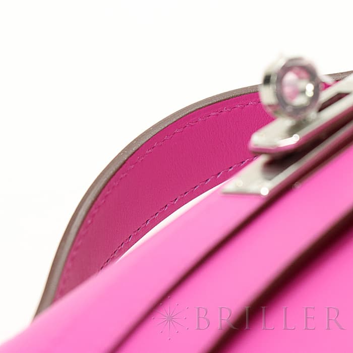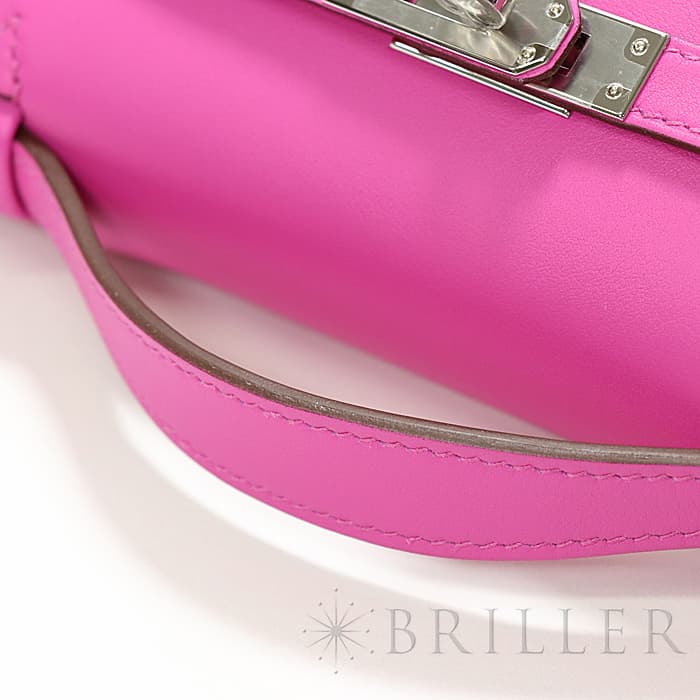 ポシェットケリーはケリーの高級感あるデザインそのままに軽やかなサイズ感で人気があります。ミニバッグ人気をうけてレアになっているポシェットケリーの中でも柔らかくなめらかなスイフト素材のマグノリアはビビットなピンクがおしゃれなアイテムです。シルバー金具は落ち着いた雰囲気を出しながらも華やかな場所で大人の装いを演出してくれます。パーティーやお出かけのお供に、ドラマティックなコーディネートを完成させてくれそうです。ハンドル部分をたためばクラッチバッグのように持てる使い勝手のよさも魅力的なU刻印(2022年)の新品バッグです。