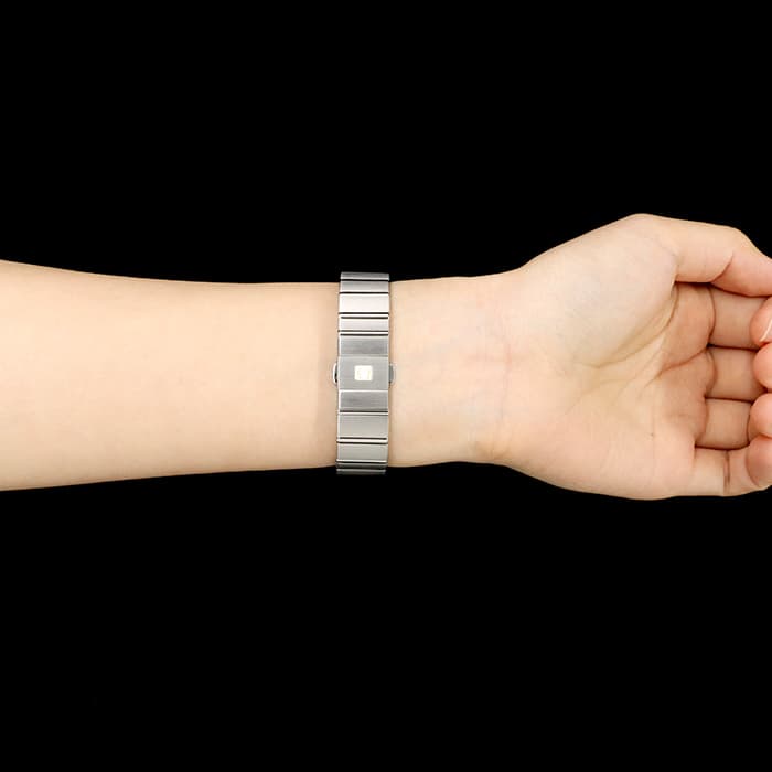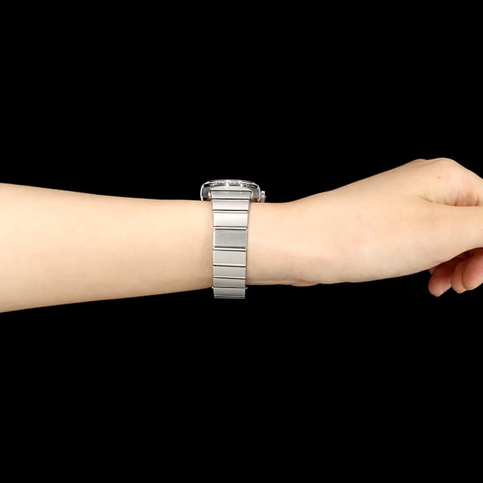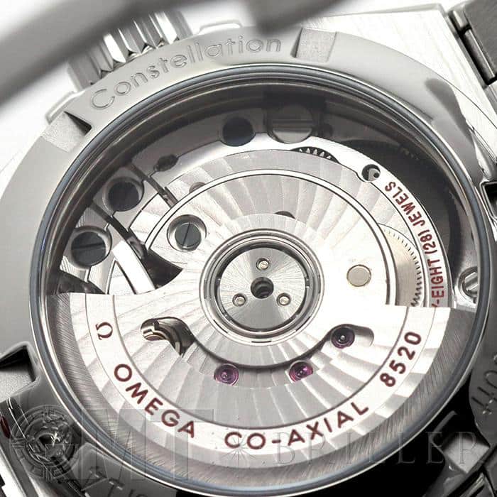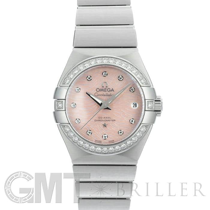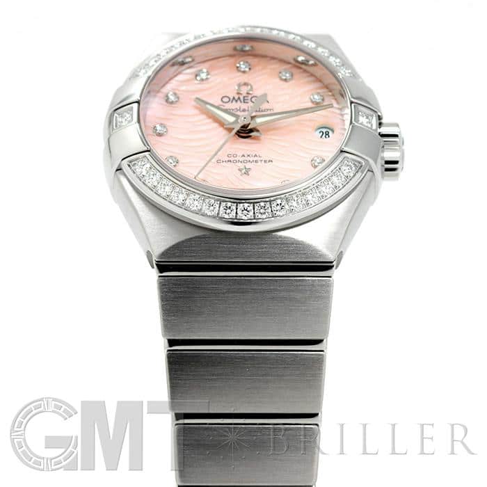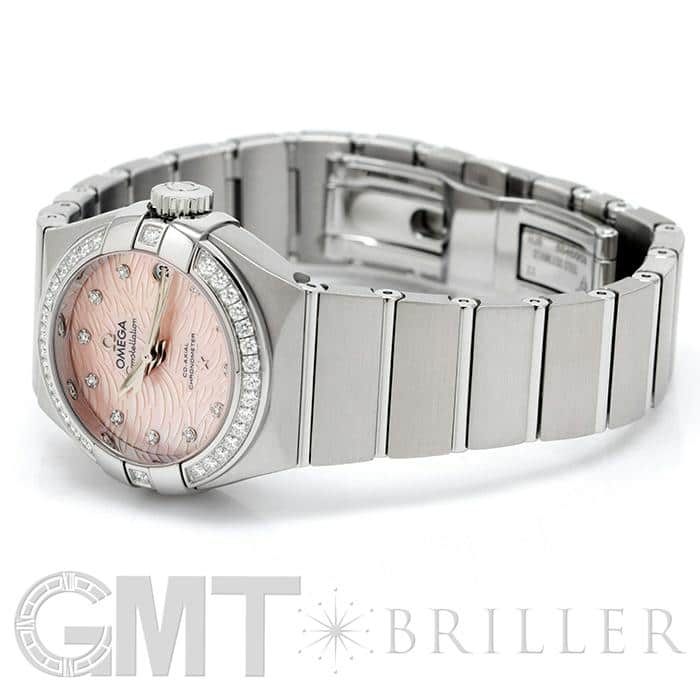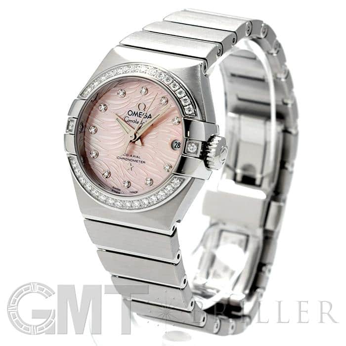 2014年に誕生した「コンステレーション プリュム」は、シェル文字盤に羽をイメージした柔らかな曲線を施した文字盤がドラマティックなシリーズです。ケースサイズは27mmで、素材はデイリーに使いやすいステンレスを使用しており、ライトコーラルマザーオブパールのフェミニンな印象と、ベゼルのダイヤモンドが高級感を生み出しています。ムーブメントにはオメガが誇るコーアクシャルクロノメーターのCal.8520を搭載しています。裏蓋がシースルーになっているため、機械式時計を視覚的にもお楽しみいただけます。自分へのご褒美や大切な方へのプレゼントにぜひご検討ください。