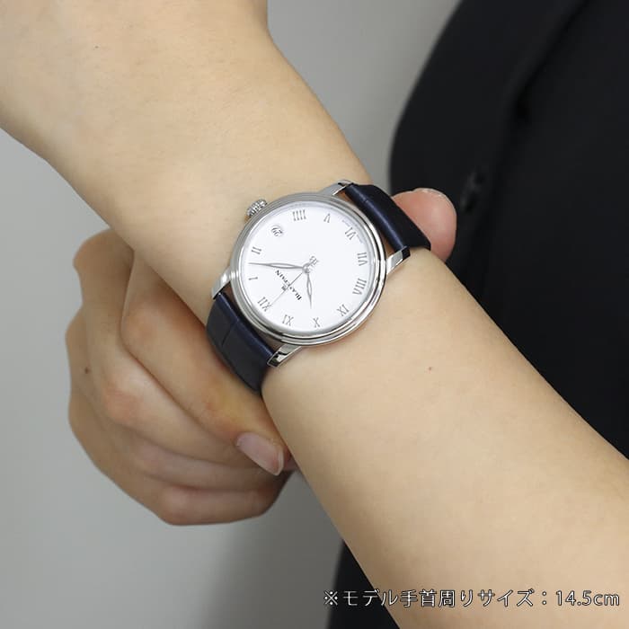 シンプルで上品なホワイトのダイアルにローマインデックス、