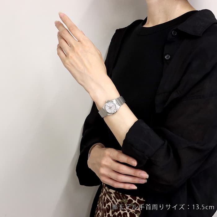 高級感のあるマザーオブパールの文字盤とダイヤモンドのセッティングが美しく、27mmという小ぶりなケースサイズが可愛らしさも引き立てます。