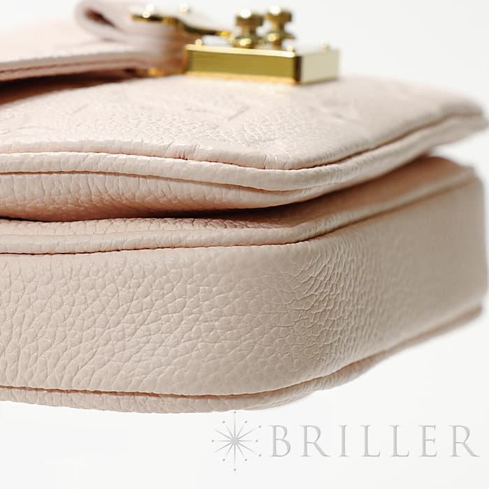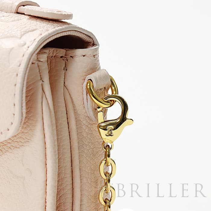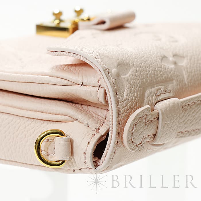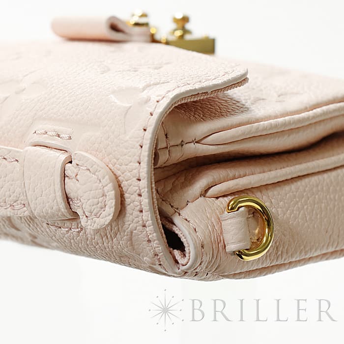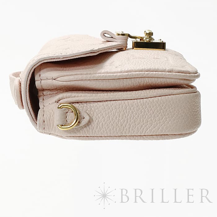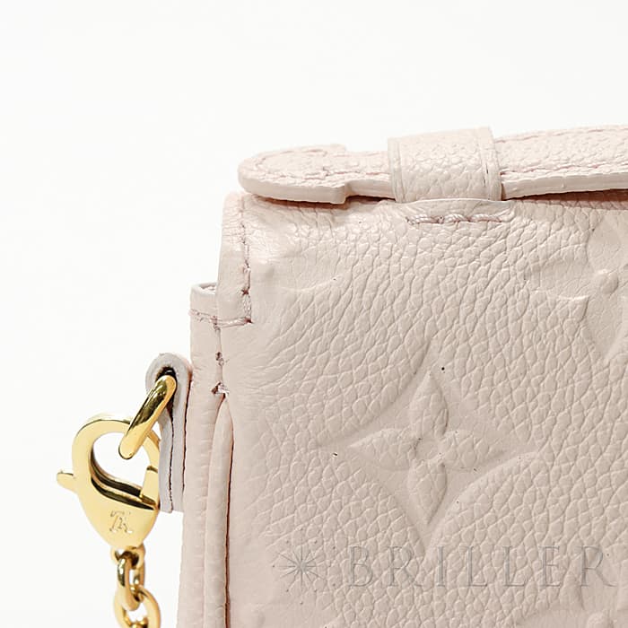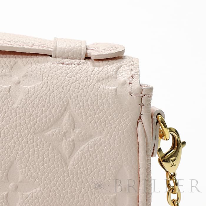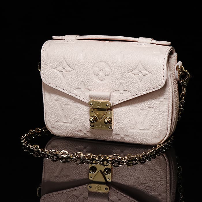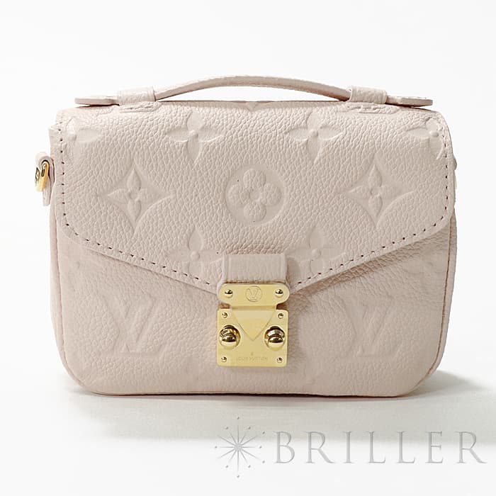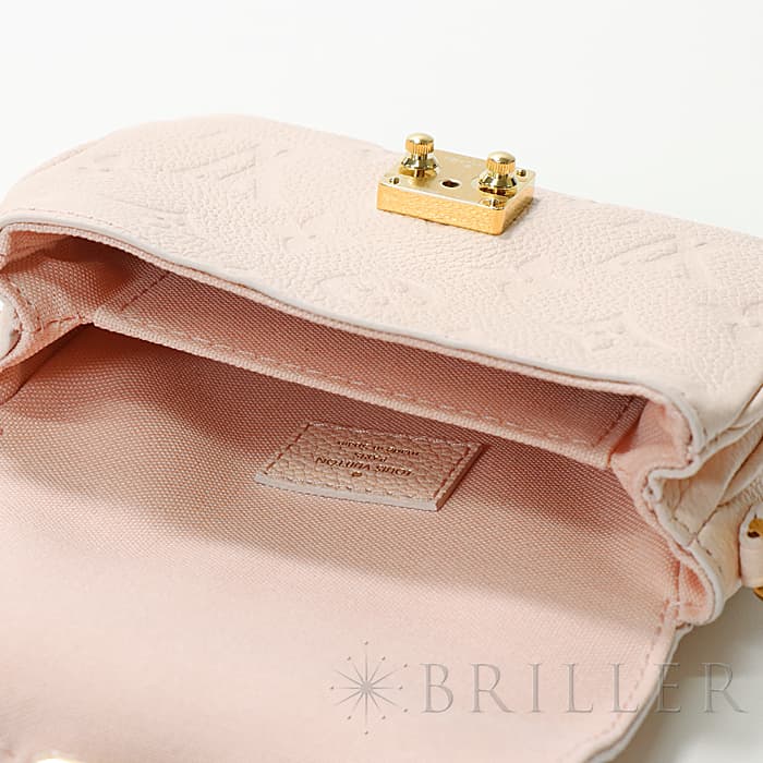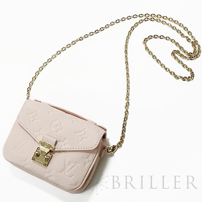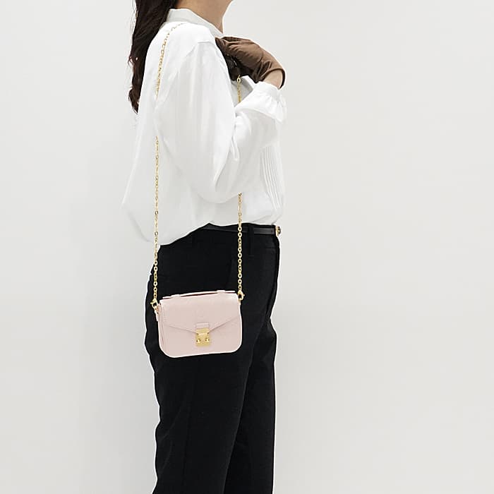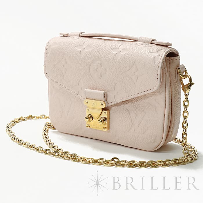 フランスを代表するファッションブランド「ルイ・ヴィトン」 2022年春夏新作のマイクロメティスはとても可愛らしいミニショルダーバッグです。 ベビーピンクのような淡いピンクのモノグラム・アンプラント レザーを採用。ガーリーと大人っぽさが融合されたとても魅力的なアイテムです。取り外し可能なゴールドのチェーンがベビーピンクと相まって、フェミニンな印象を与えます。春先のお出かけはもちろん、冬には白いファー素材のニットと合わせても非常に可愛らしく仕上がります。