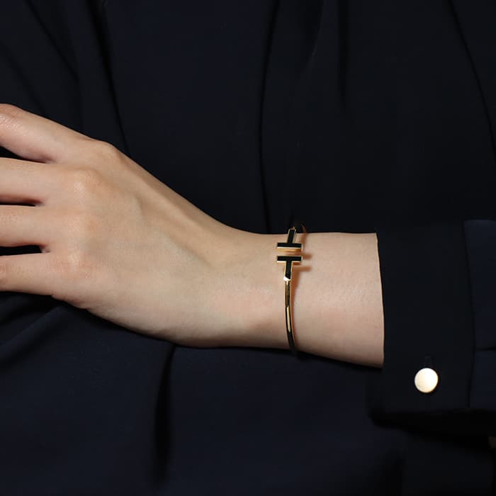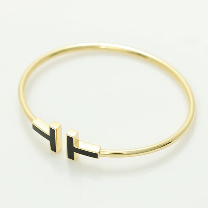 ティファニー ティファニーT ブラックオニキス ワイヤー ブレスレット イエローゴールド スモール 64028723 TIFFANY
