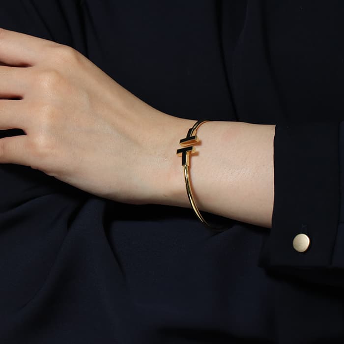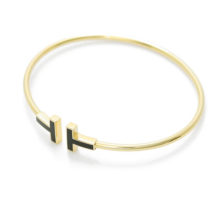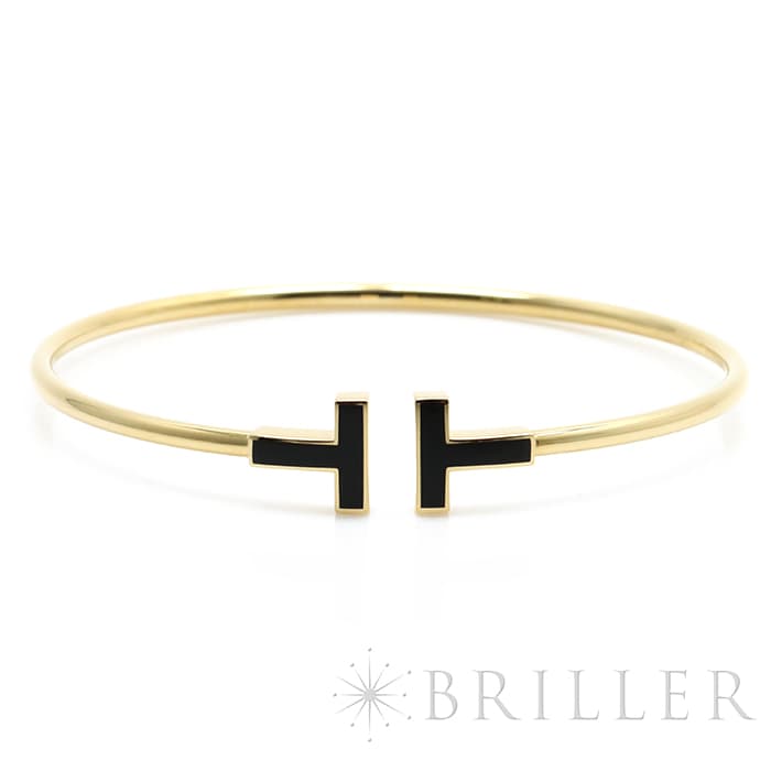 ティファニー ティファニーT ブラックオニキス ワイヤー ブレスレット イエローゴールド ラージ 64028774 TIFFANY