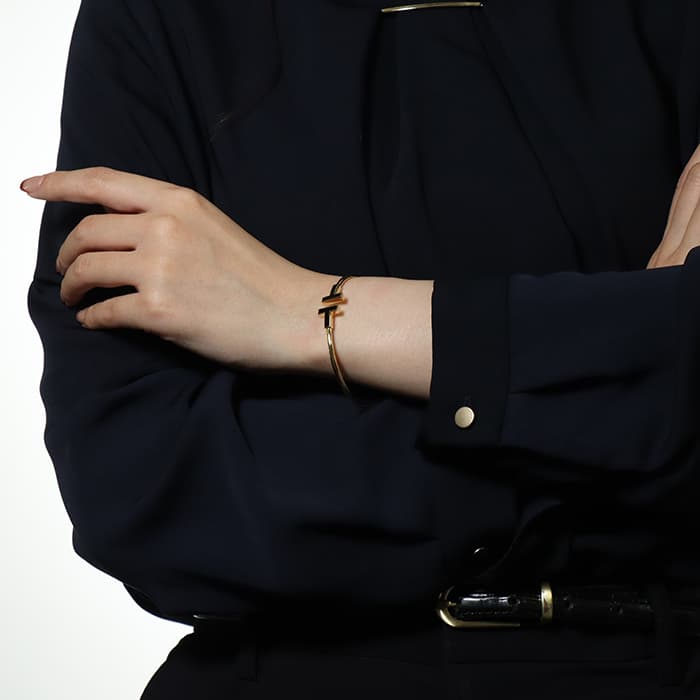 世界5大ジュエラーの1つであるティファニーは、鮮やかなティファニーブルーと呼ばれるブランドカラーで、ジュエリー好きでなくても知らない人がいないほどの知名度を誇るアメリカのブランドです。 2人の絆を表現した、人気のティファニーTコレクション。オニキスが先端部分に使われ、イエローゴールドと合わせ腕元を上品に彩ります。